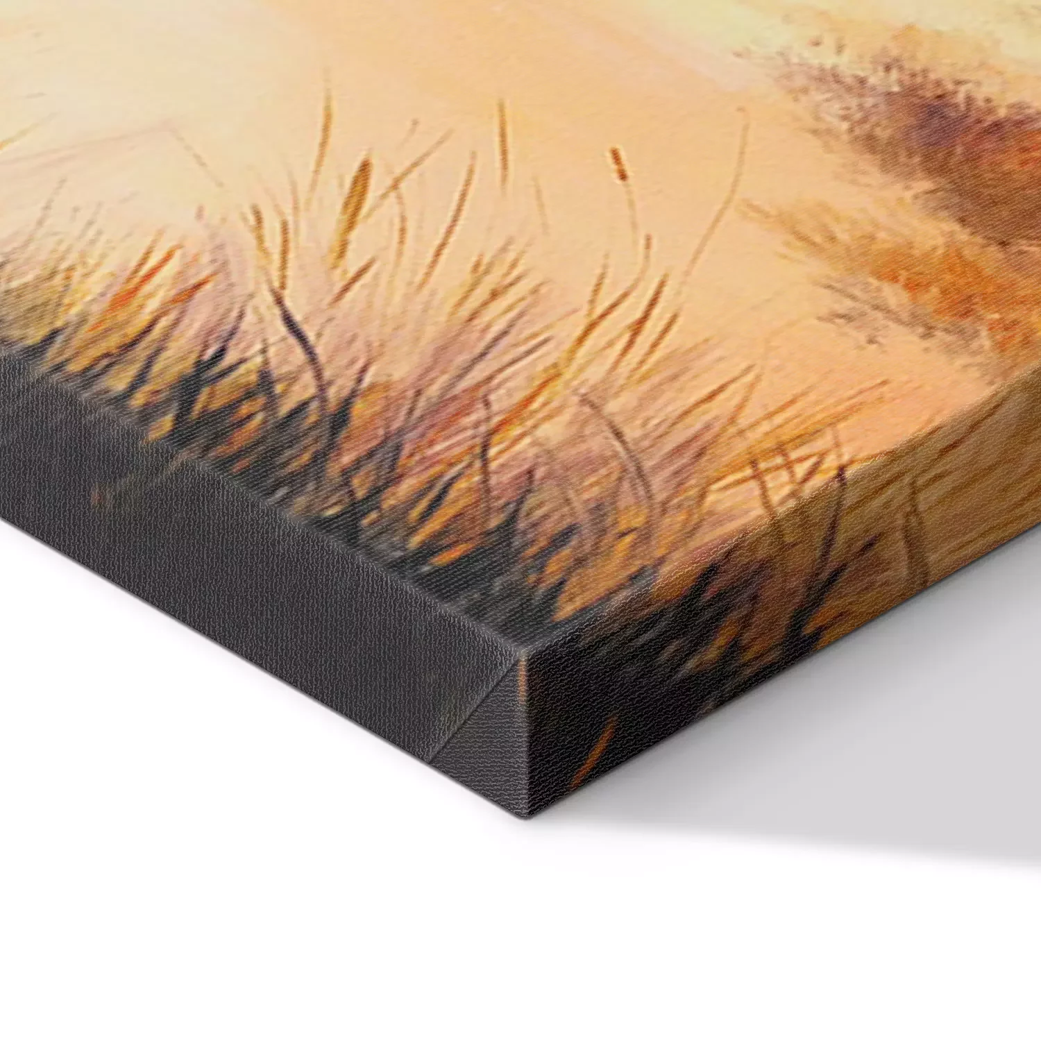 De print wordt aangebracht op hoogwaardig canvas dat op een schildersweefgetouw (spieraam) wordt gespannen. Omdat de print de zijranden bedekt, hoeft het ontwerp niet met een extra kader te worden omlijst. Wij raden ook composities aan die uit meerdere foto's bestaan en zo een coherente compositie vormen.
