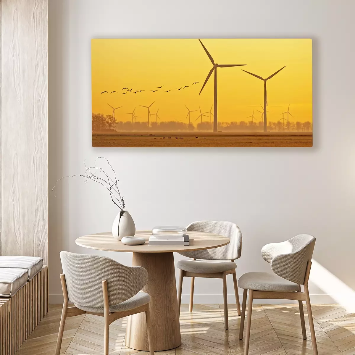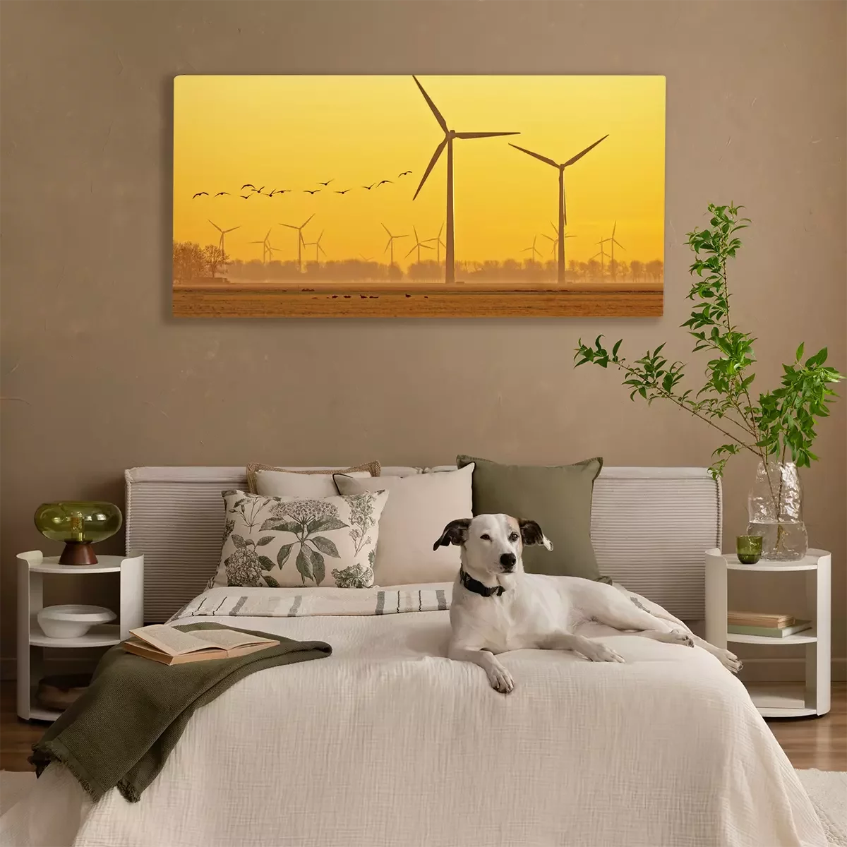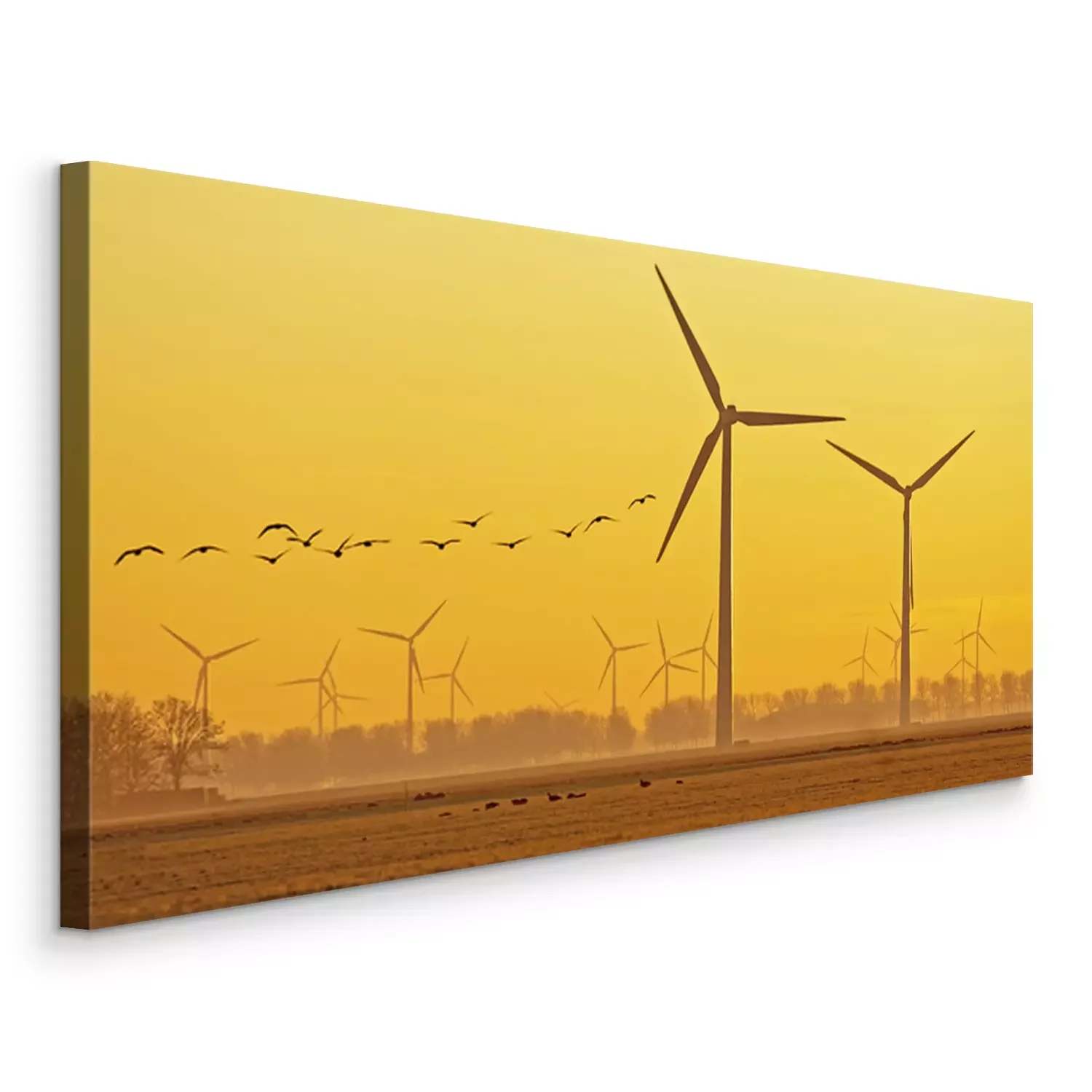 Canvas: Vogels vliegen over een veld in de vroege ochtend in de winter