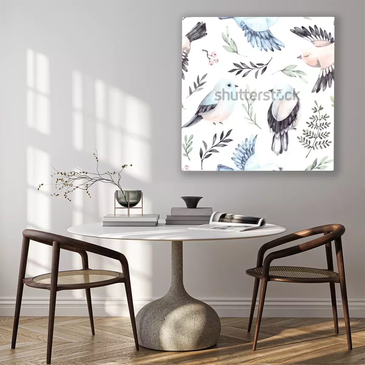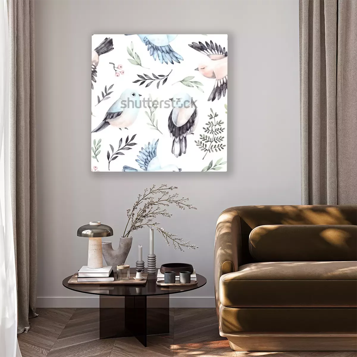Canvas: Vogeltjes tussen de bladeren