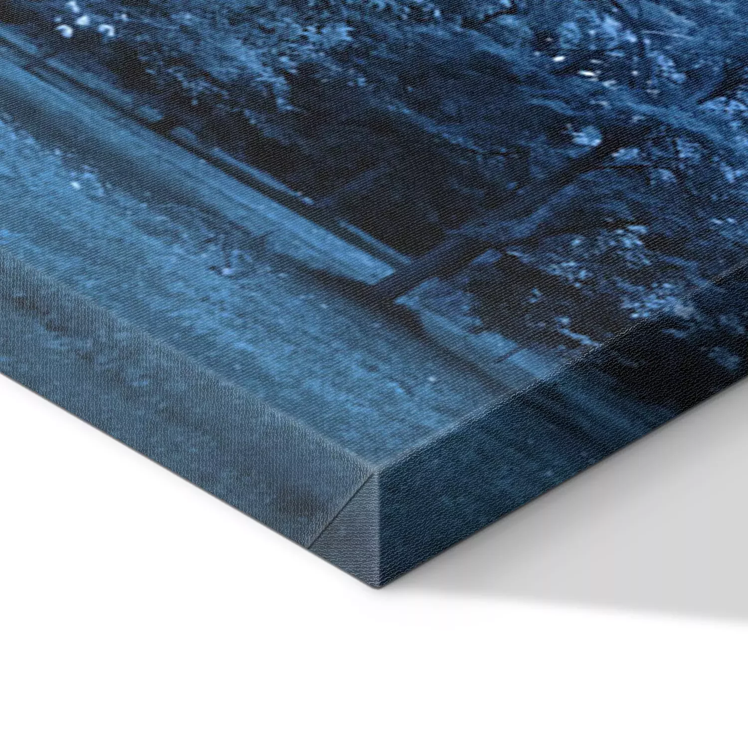 De print wordt aangebracht op hoogwaardig canvas dat op een schildersweefgetouw (spieraam) wordt gespannen. Omdat de print de zijranden bedekt, hoeft het ontwerp niet met een extra kader te worden omlijst. Wij raden ook composities aan die uit meerdere foto's bestaan en zo een coherente compositie vormen.