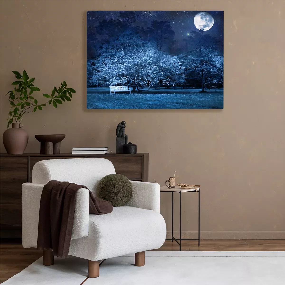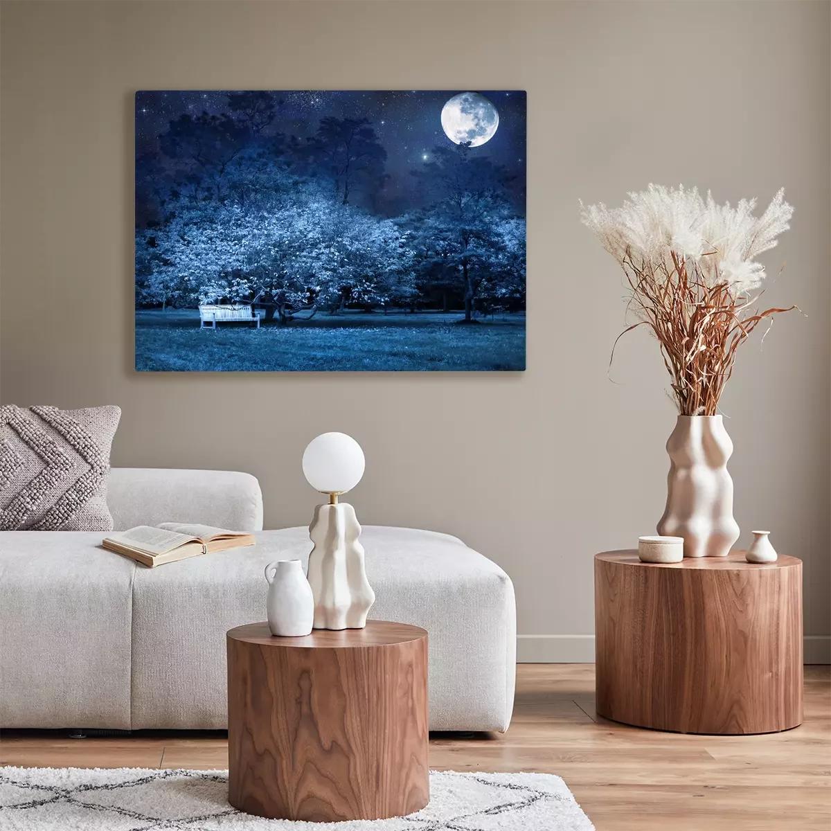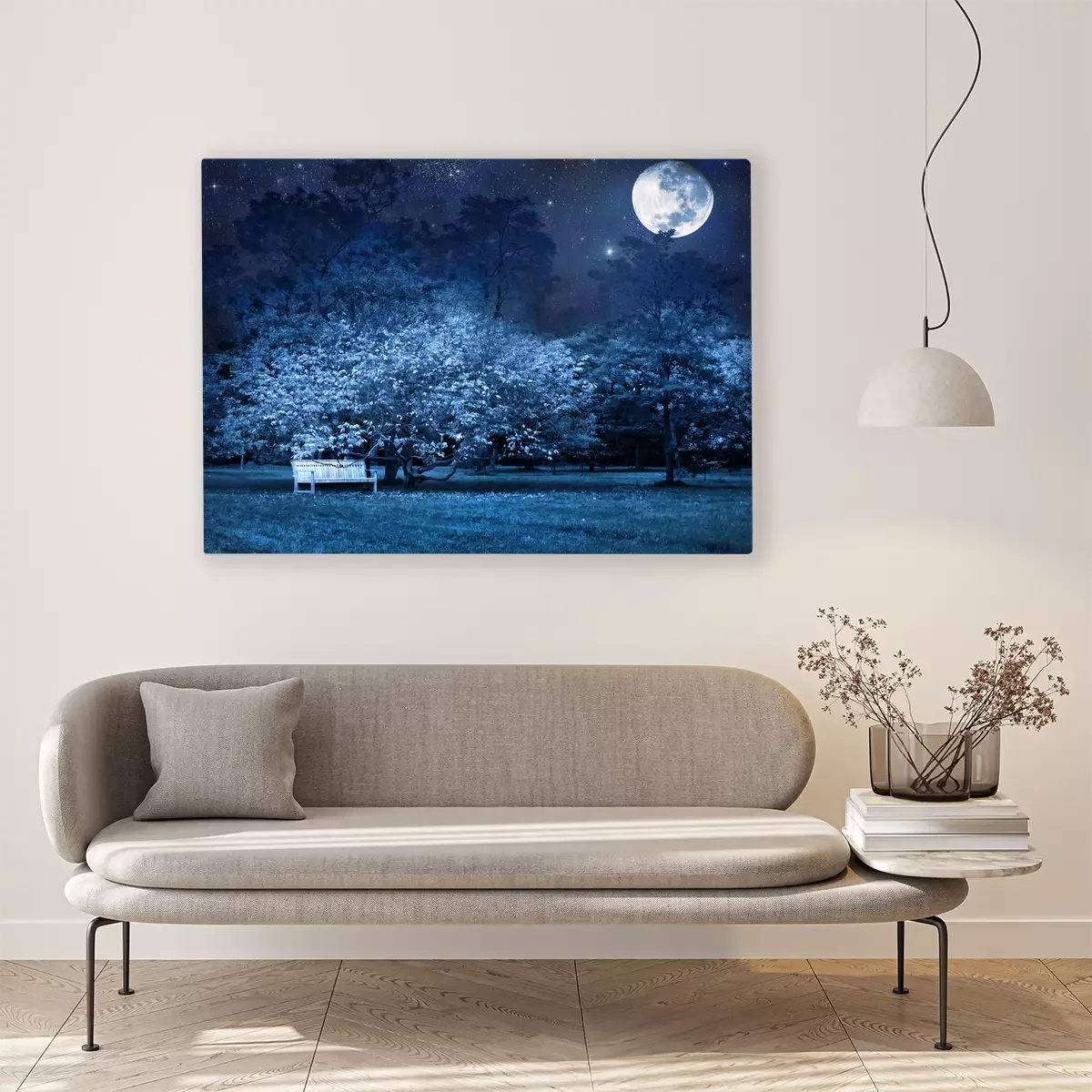 Canvas: Volle maan 's nachts in het park