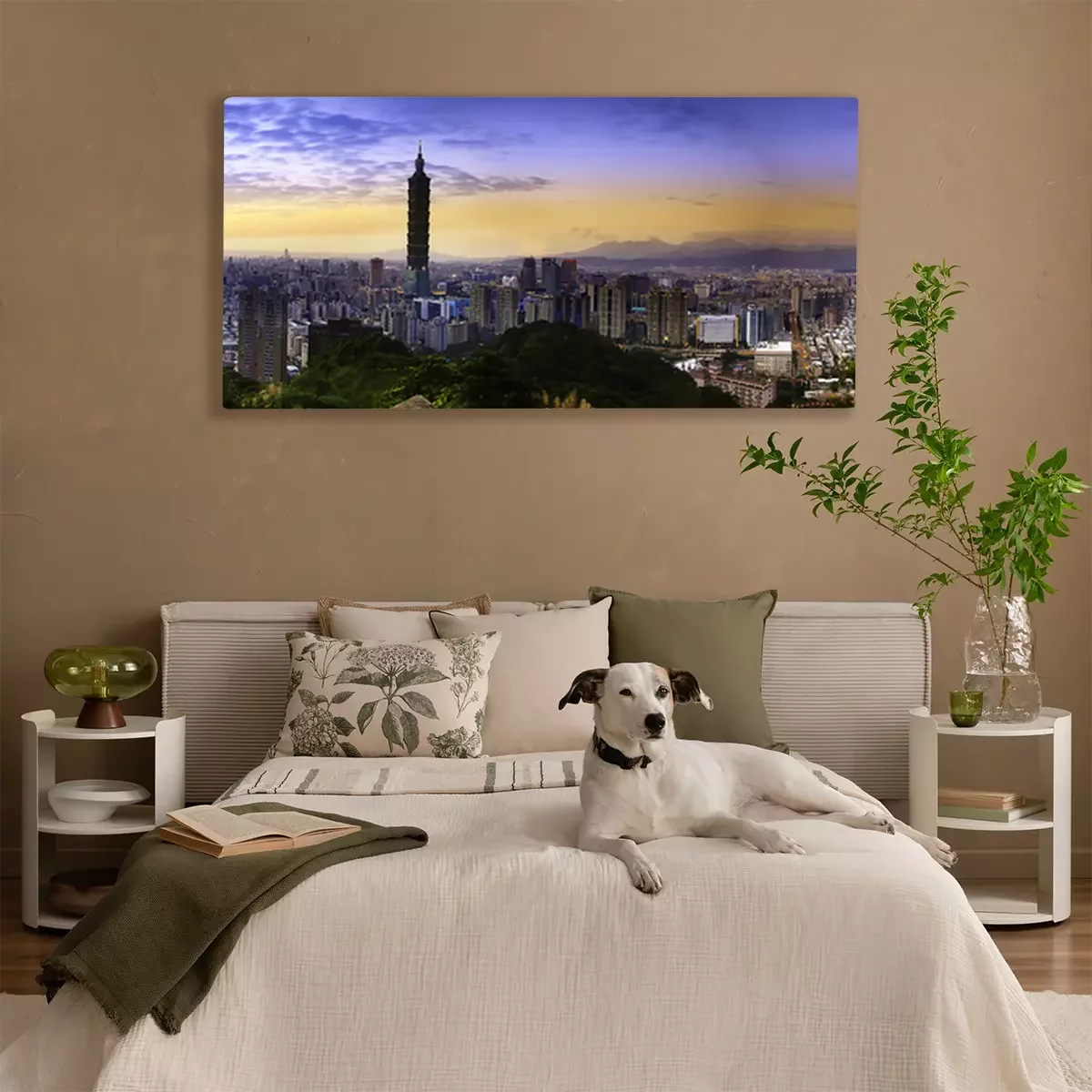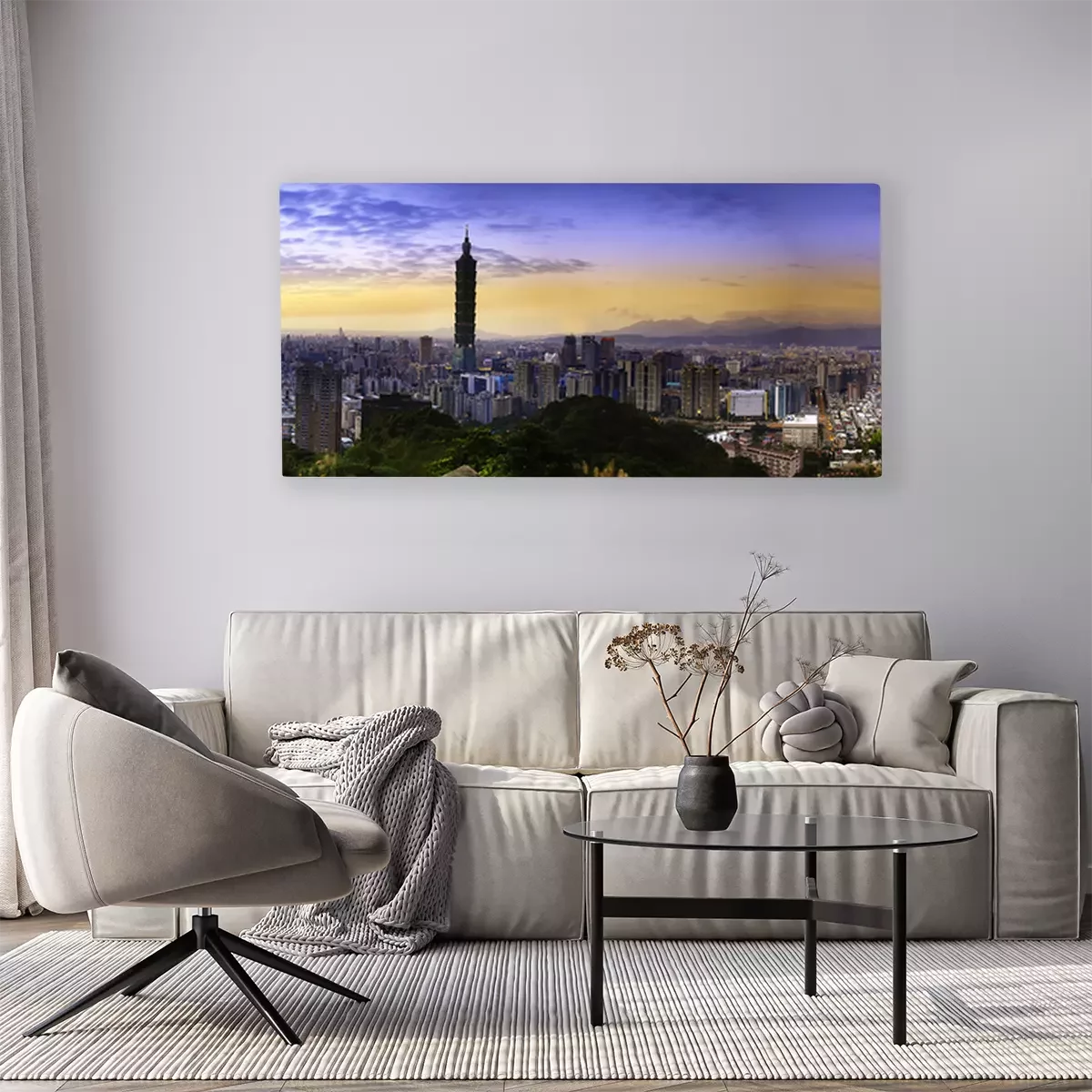 Canvas: Volledige weergave zonsondergang van Taipeh stad