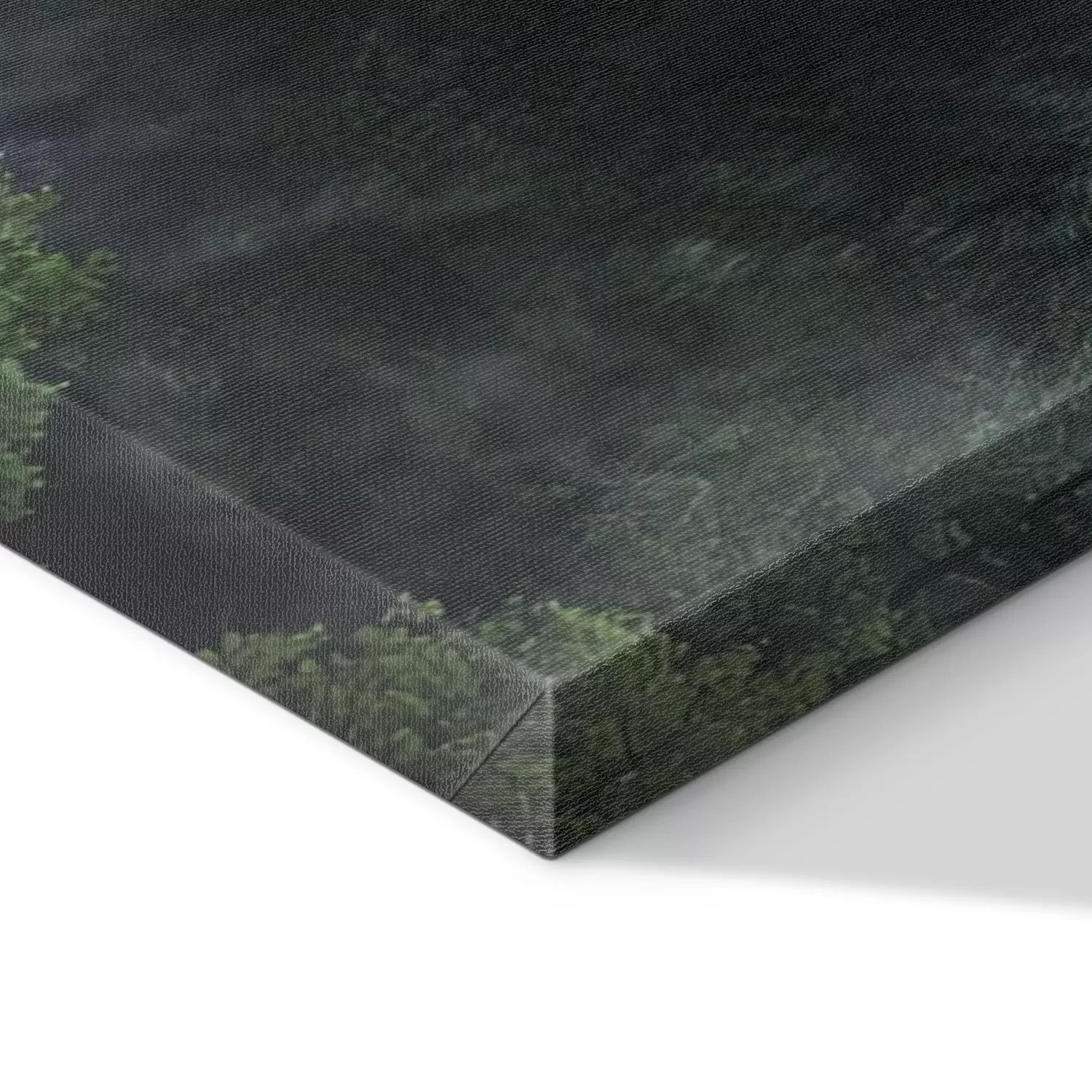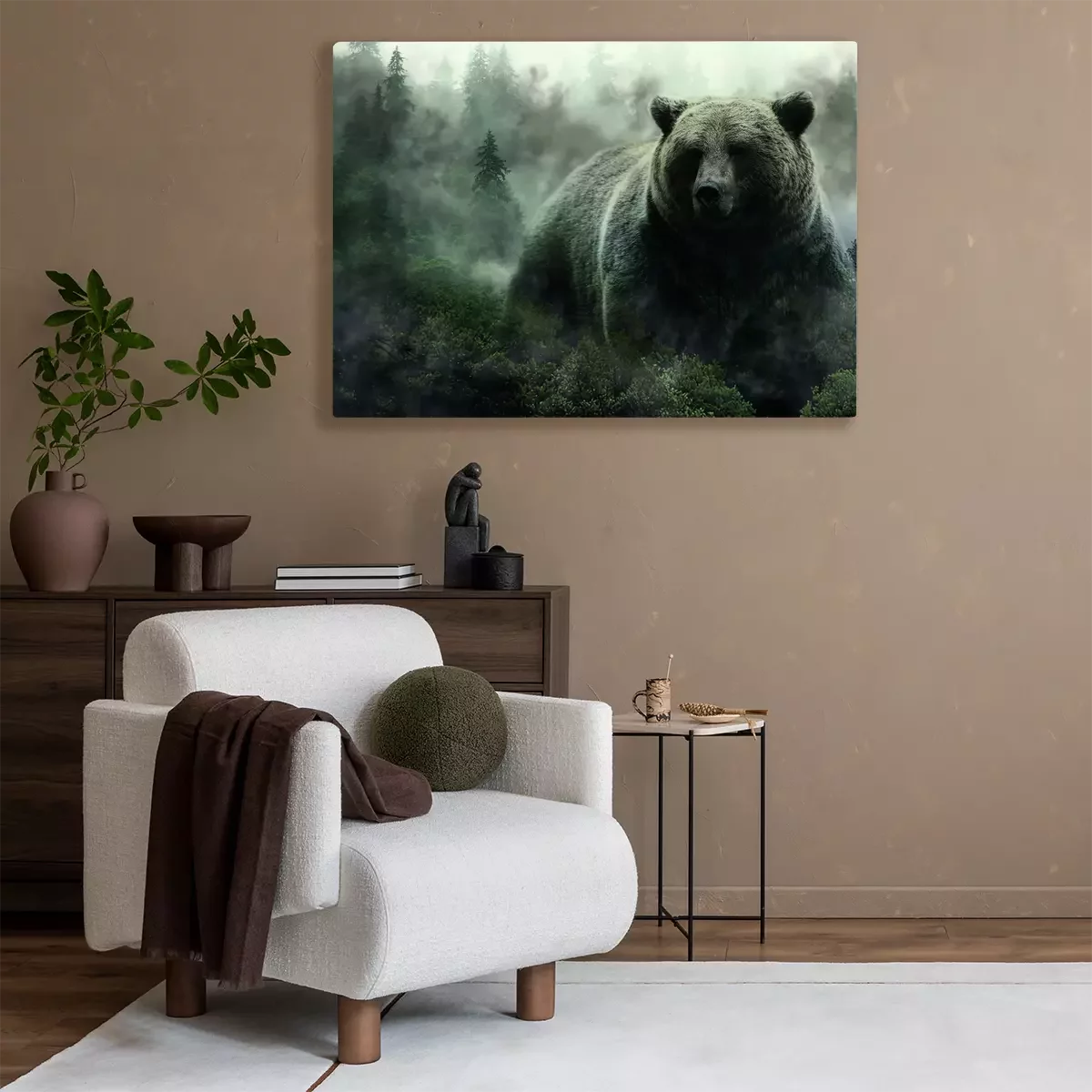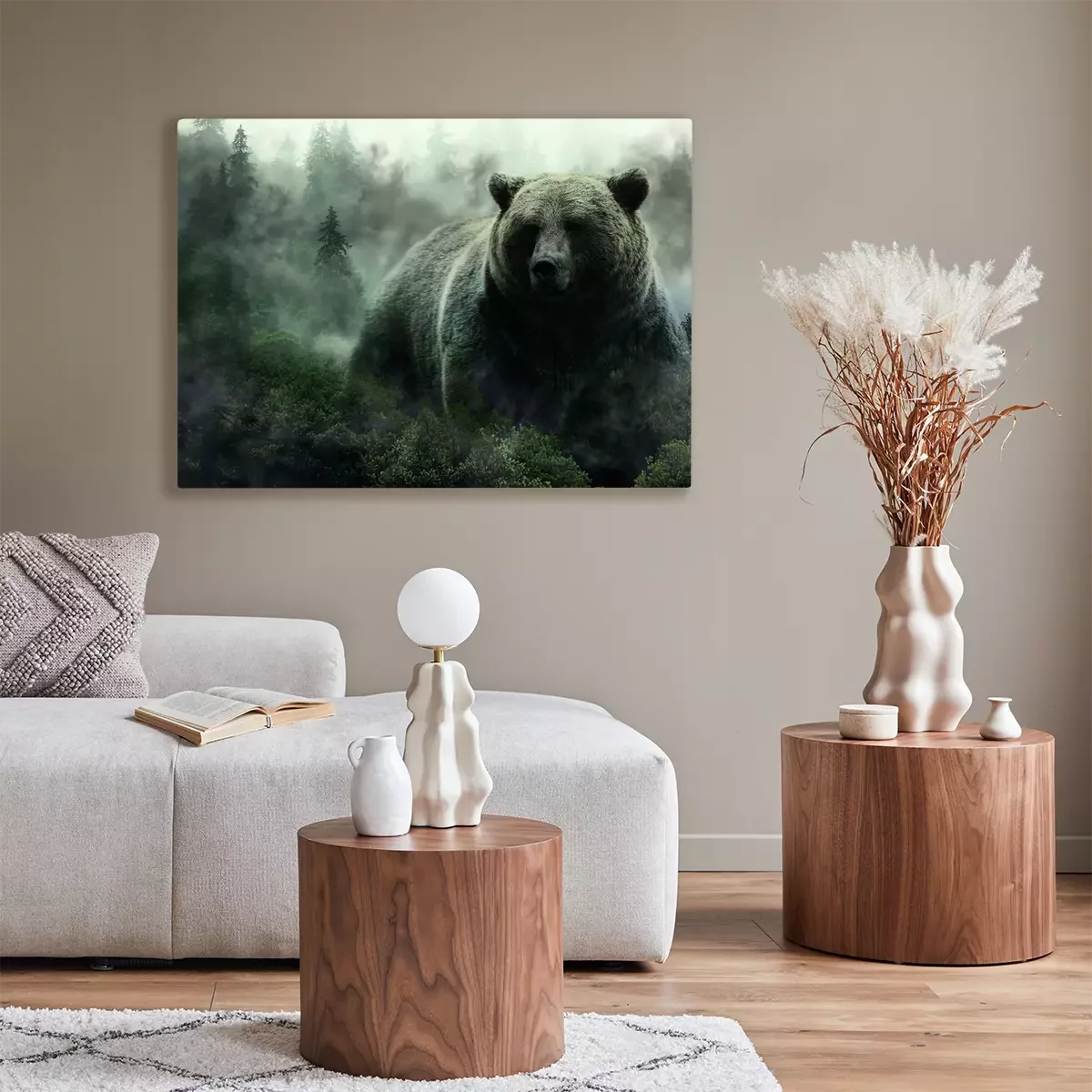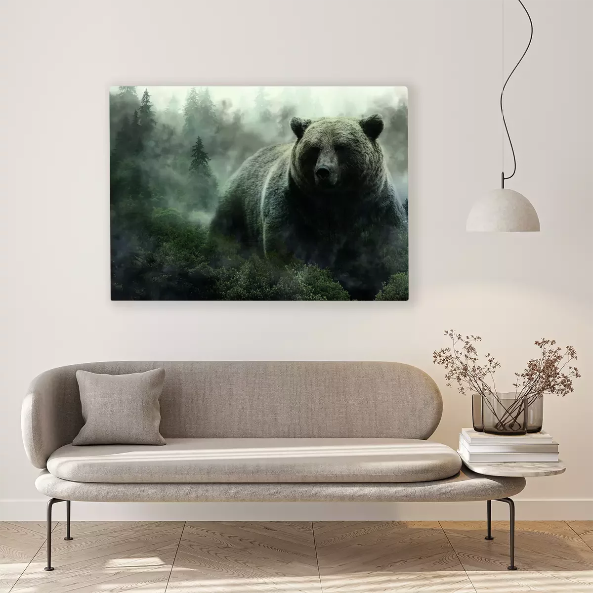 Volwassen beer in een mysterieuze, mistige bosomgeving