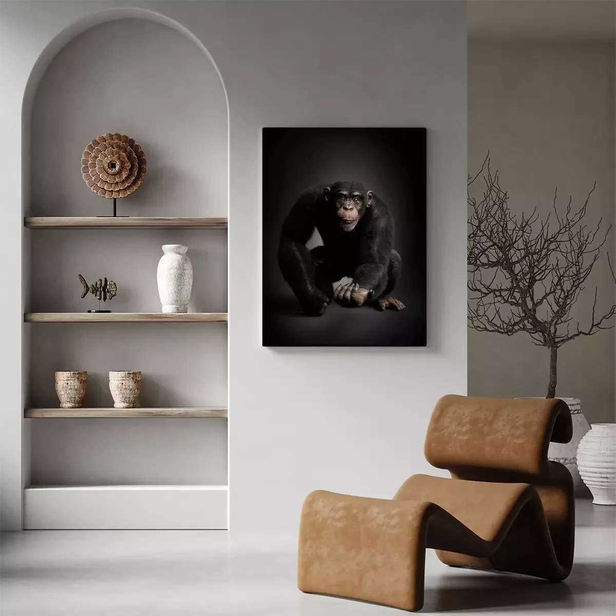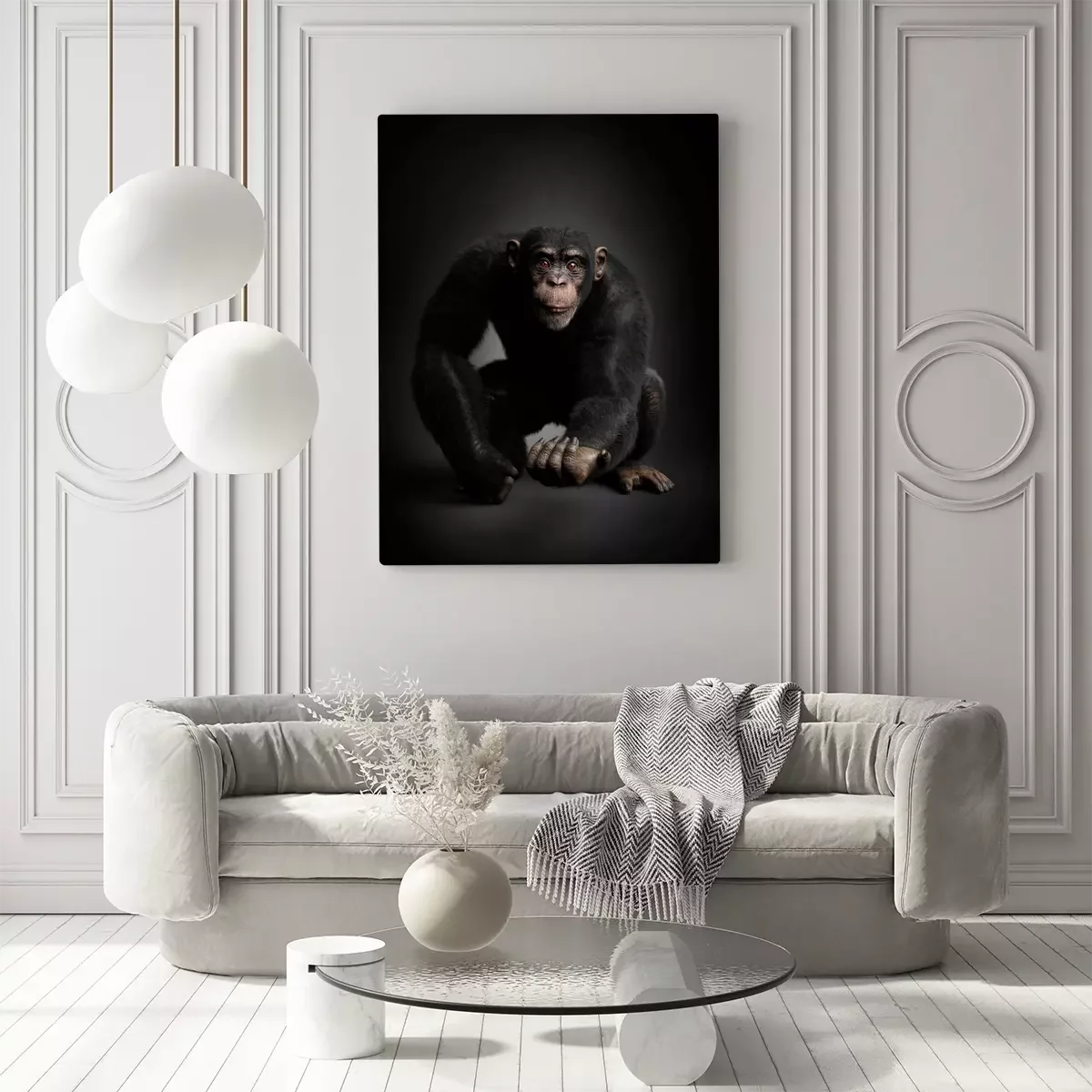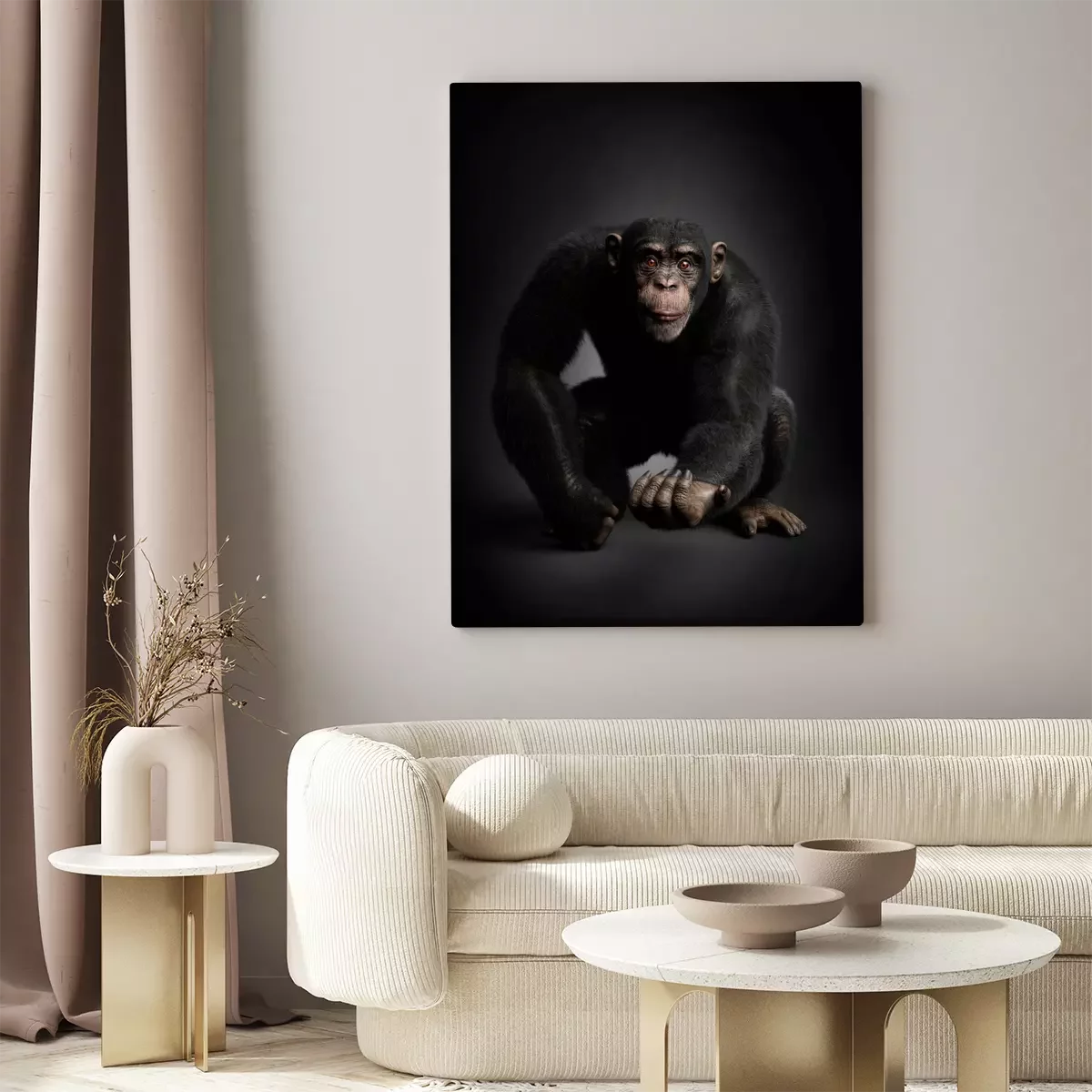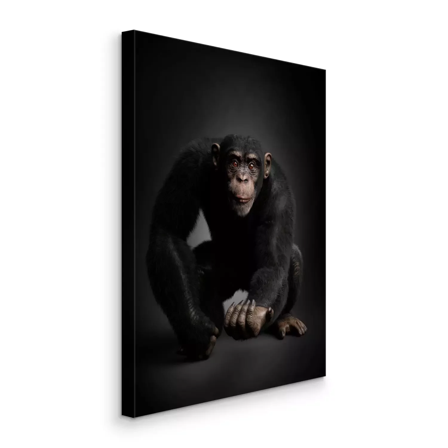 Canvas: Volwassen chimpansee op zwarte achtergrond