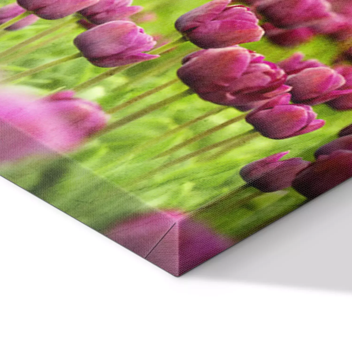 De print wordt aangebracht op hoogwaardig canvas dat op een schildersweefgetouw (spieraam) wordt gespannen. Omdat de print de zijranden bedekt, hoeft het ontwerp niet met een extra kader te worden omlijst. Wij raden ook composities aan die uit meerdere foto's bestaan en zo een coherente compositie vormen.