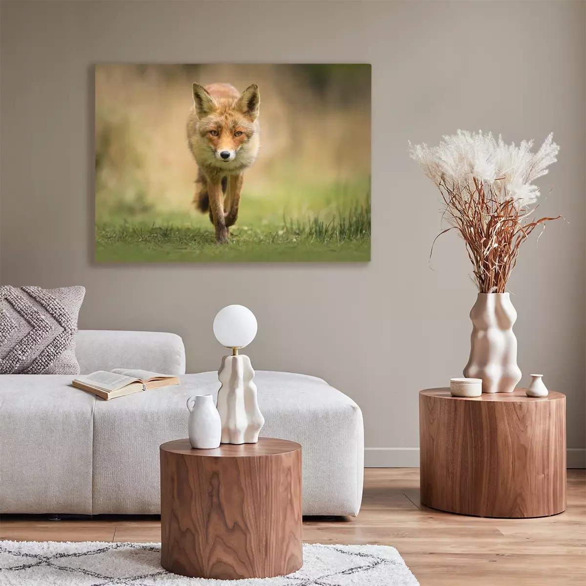 De print wordt aangebracht op hoogwaardig canvas dat op een schildersweefgetouw (spieraam) wordt gespannen. Omdat de print de zijranden bedekt, hoeft het ontwerp niet met een extra kader te worden omlijst. Wij raden ook composities aan die uit meerdere foto's bestaan en zo een coherente compositie vormen.