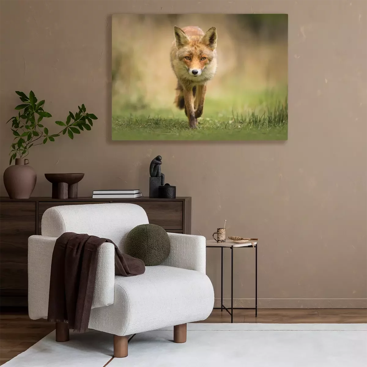 Canvas Vos loopt op de weg