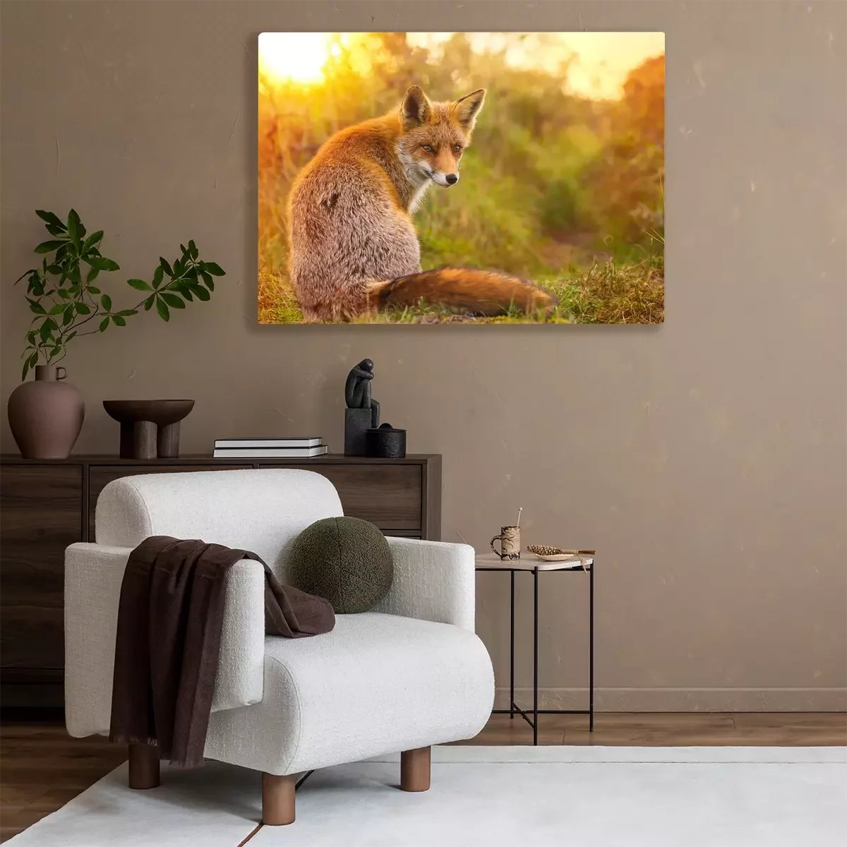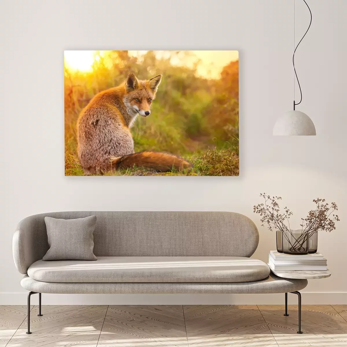 Canvas: Vos op de achtergrond van ondergaande zon