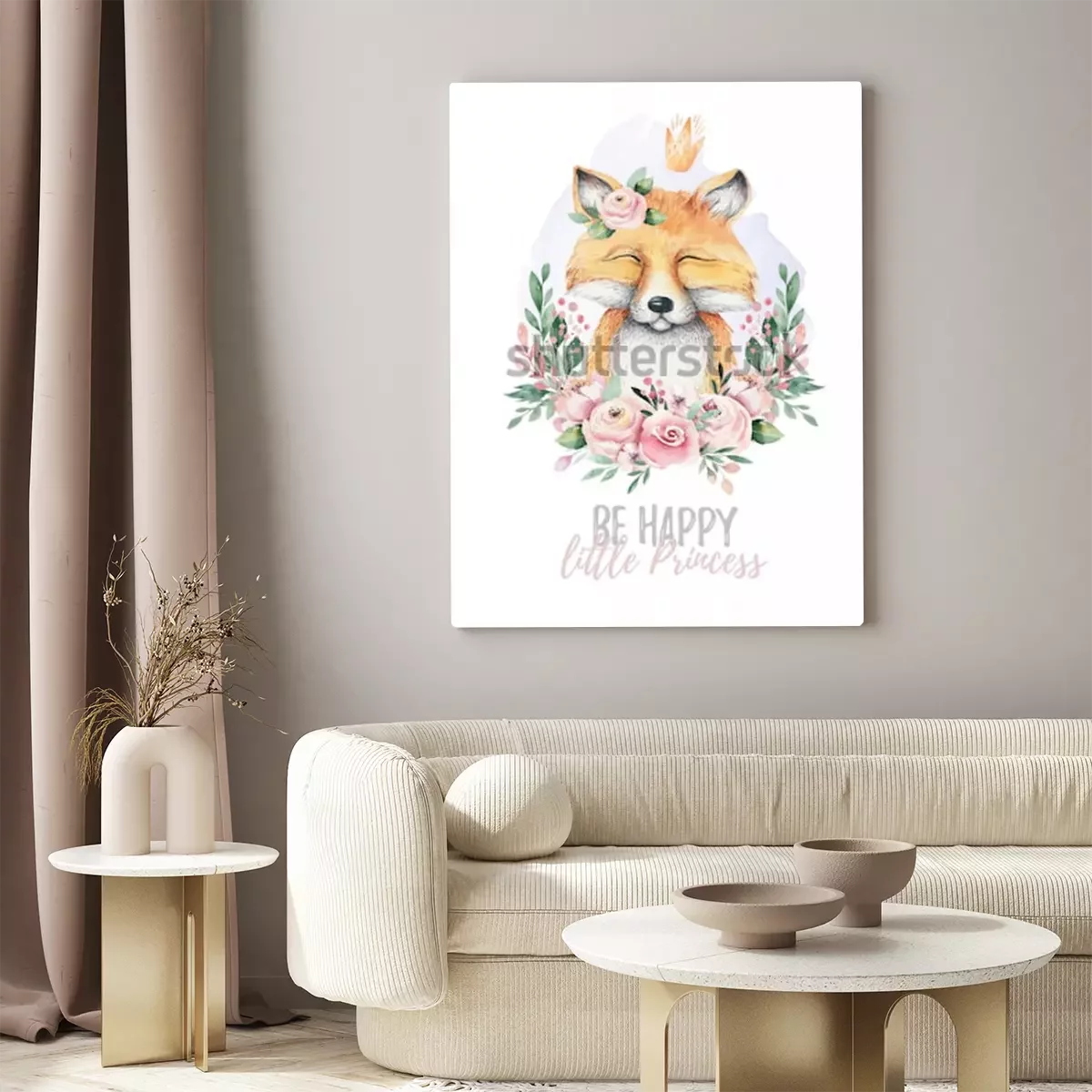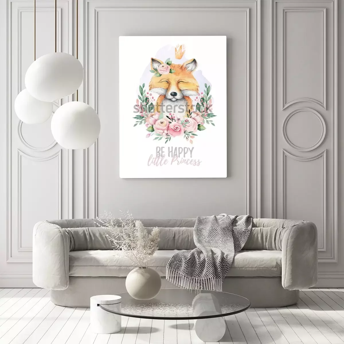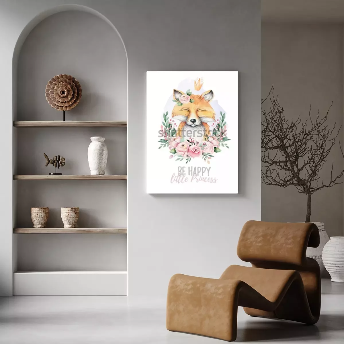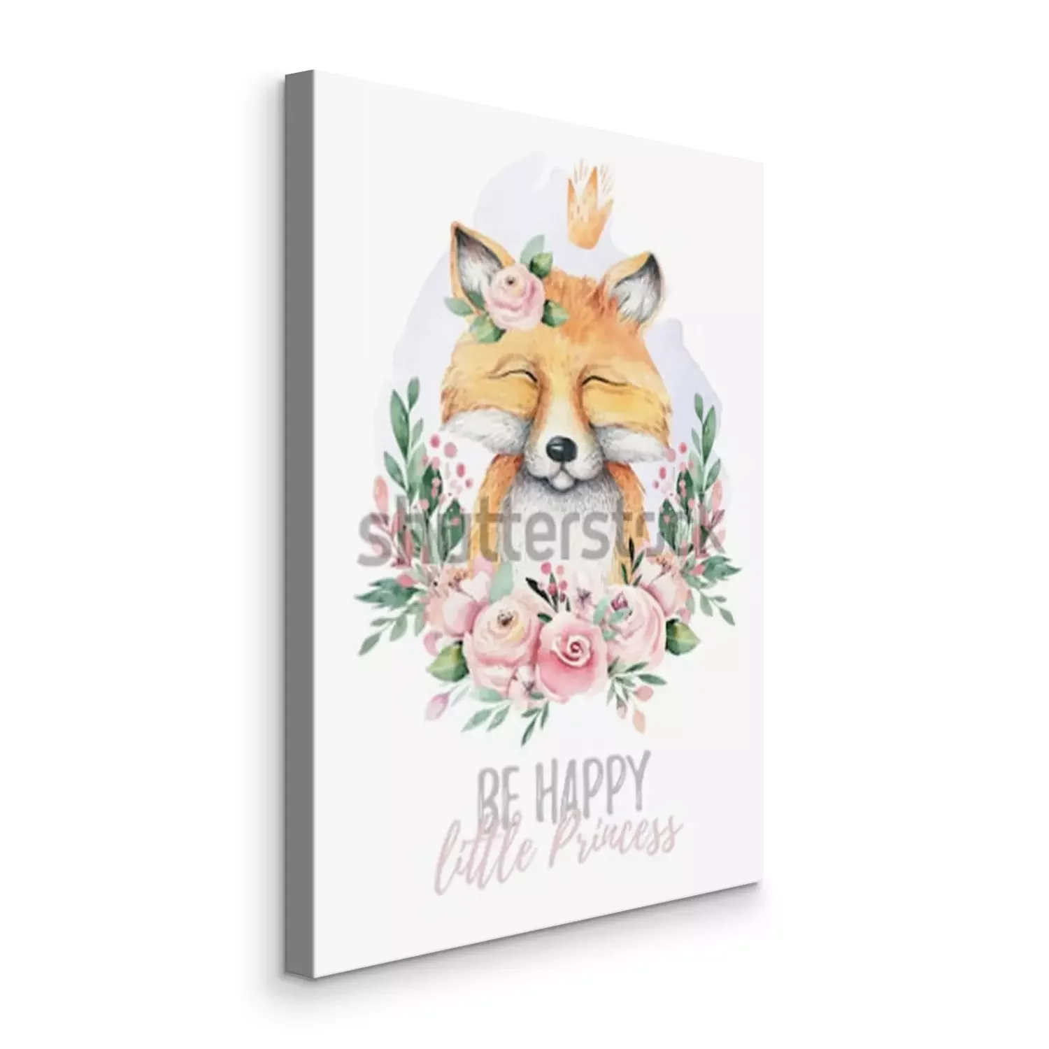 Een typografisch canvas voor meisje is een uitstekende manier om een vrolijke decoratieve toets toe te voegen aan het interieur, die een glimlach op het gezicht van het kind zal toveren. We hebben de trend van patronen met tekst gecombineerd met de huidige mode voor bosdieren. Alle kinderen houden van dieren, dus je kunt er zeker van zijn dat dit een uitstekende oplossing is. Daarnaast hebben we gekozen voor een uitzonderlijk canvas. Vos lijkt alsof hij met aquarelverf op doek is geschilderd. Het patroon lijkt helemaal niet op een kant-en-klare print, maar op een prachtige, met de hand gemaakte illustratie. Wat de compositie zeker een meisjesachtige uitstraling geeft, zijn de weelderige rozen die een krans vormen rond het bosdier. Een ander detail dat de aandacht verdient, is de kroon boven het hoofd van de kleine vos. Deze past perfect bij de tekst: Be happy little princess. In welk interieur komt een dergelijk canvas tot zijn recht? Vos past perfect in Scandinavische en eco-stijlen, die momenteel enorm populair zijn. Door voor een dergelijke inrichting te kiezen, kun je een kinderkamer creëren die gevuld is met de natuur, en wanddecoraties met bosdieren zullen perfect passen. Omdat de trend momenteel naar kinderkamers met ingetogen kleuren gaat, is ons aquarel canvas een uitstekende keuze. De aquarel is gebaseerd op gedempte, enigszins vervaagde tinten, waardoor overstimulatie wordt vermeden. Als je andere elementen wilt toevoegen die geassocieerd worden met de natuur en het bos, kun je kiezen voor verschillende soorten stickers op meubels met motieven van dennennaalden, dennenappels en bosdieren. In een dergelijke omgeving zal het hier gepresenteerde canvas prachtig uitkomen. Vos kan de muur boven het bed sieren, met bloemenbeddengoed, of boven de speelhoek. Hier zou je een tipi-tent kunnen opzetten of een kleine hangmat ophangen, zodat het kind zich voelt alsof het op een echt kampeeravontuur onder de sterren is! En als er meer ruimte op de muur is, kies dan een tweede of zelfs een derde canvas met bosdieren – een beer, een hertje of een uil.