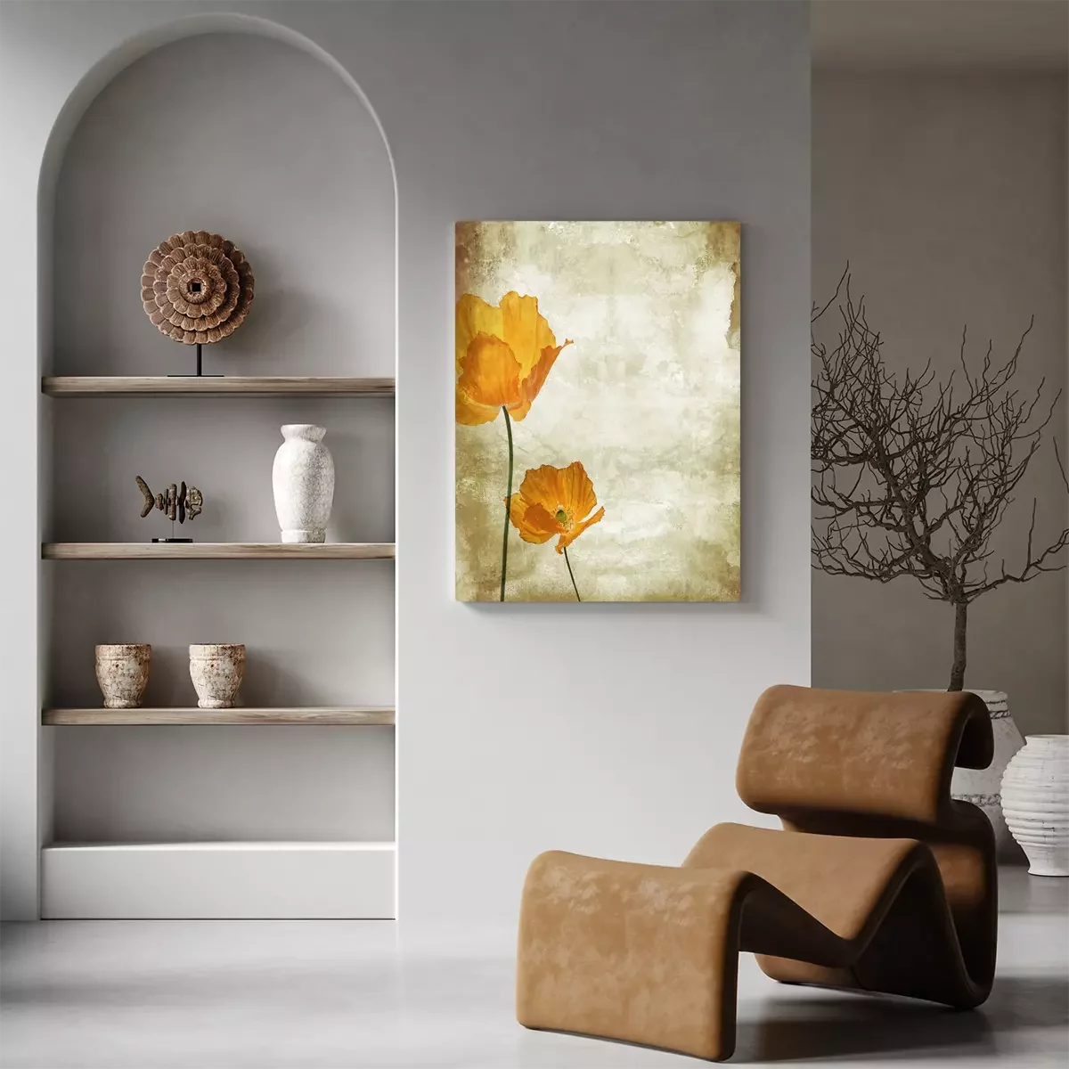 Canvas Vrij, sinaasappel, papavers grungy achtergrond