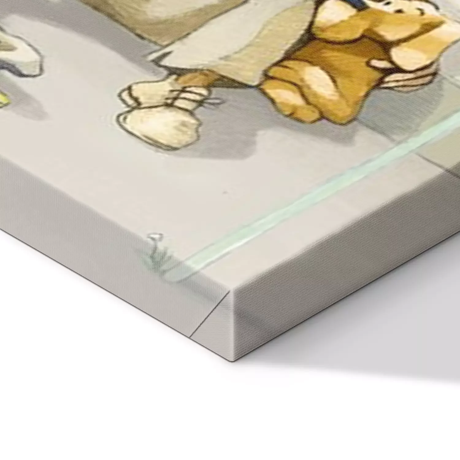 De print wordt aangebracht op hoogwaardig canvas dat op een schildersweefgetouw (spieraam) wordt gespannen. Omdat de print de zijranden bedekt, hoeft het ontwerp niet met een extra kader te worden omlijst. Wij raden ook composities aan die uit meerdere foto's bestaan en zo een coherente compositie vormen.