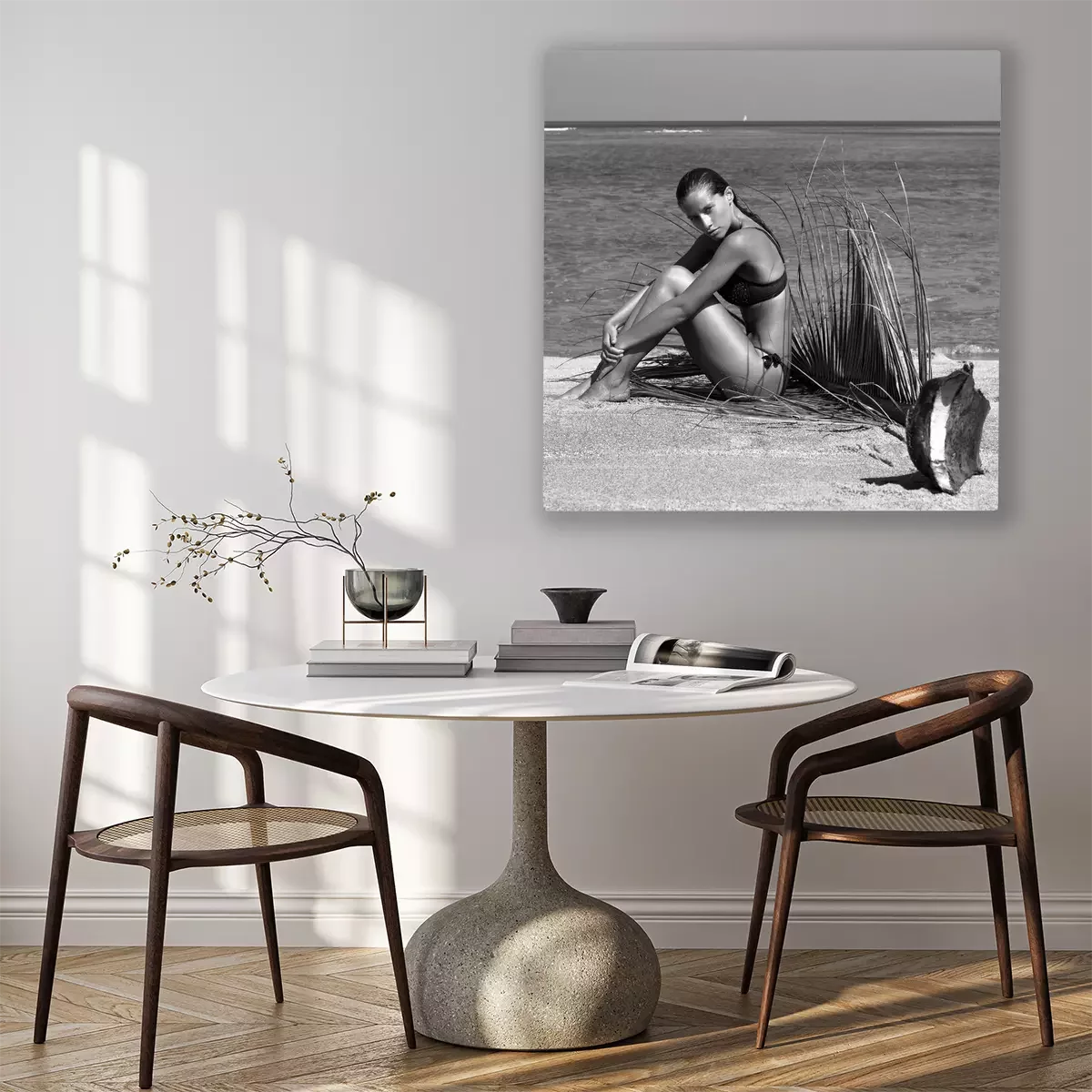 De print wordt aangebracht op hoogwaardig canvas dat op een schildersweefgetouw (spieraam) wordt gespannen. Omdat de print de zijranden bedekt, hoeft het ontwerp niet met een extra kader te worden omlijst. Wij raden ook composities aan die uit meerdere foto's bestaan en zo een coherente compositie vormen.