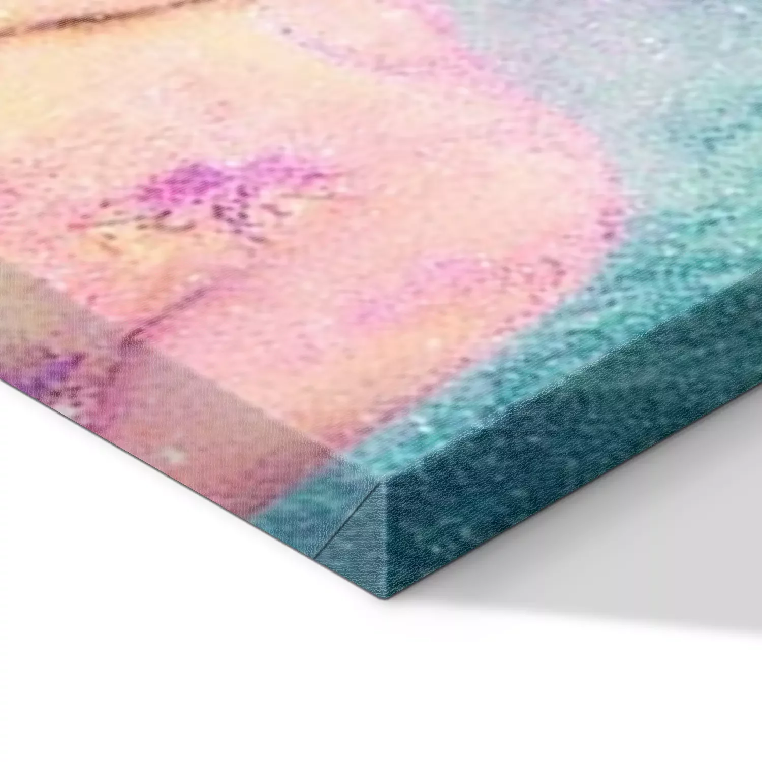 De print wordt aangebracht op hoogwaardig canvas dat op een schildersweefgetouw (spieraam) wordt gespannen. Omdat de print de zijranden bedekt, hoeft het ontwerp niet met een extra kader te worden omlijst. Wij raden ook composities aan die uit meerdere foto's bestaan en zo een coherente compositie vormen.
