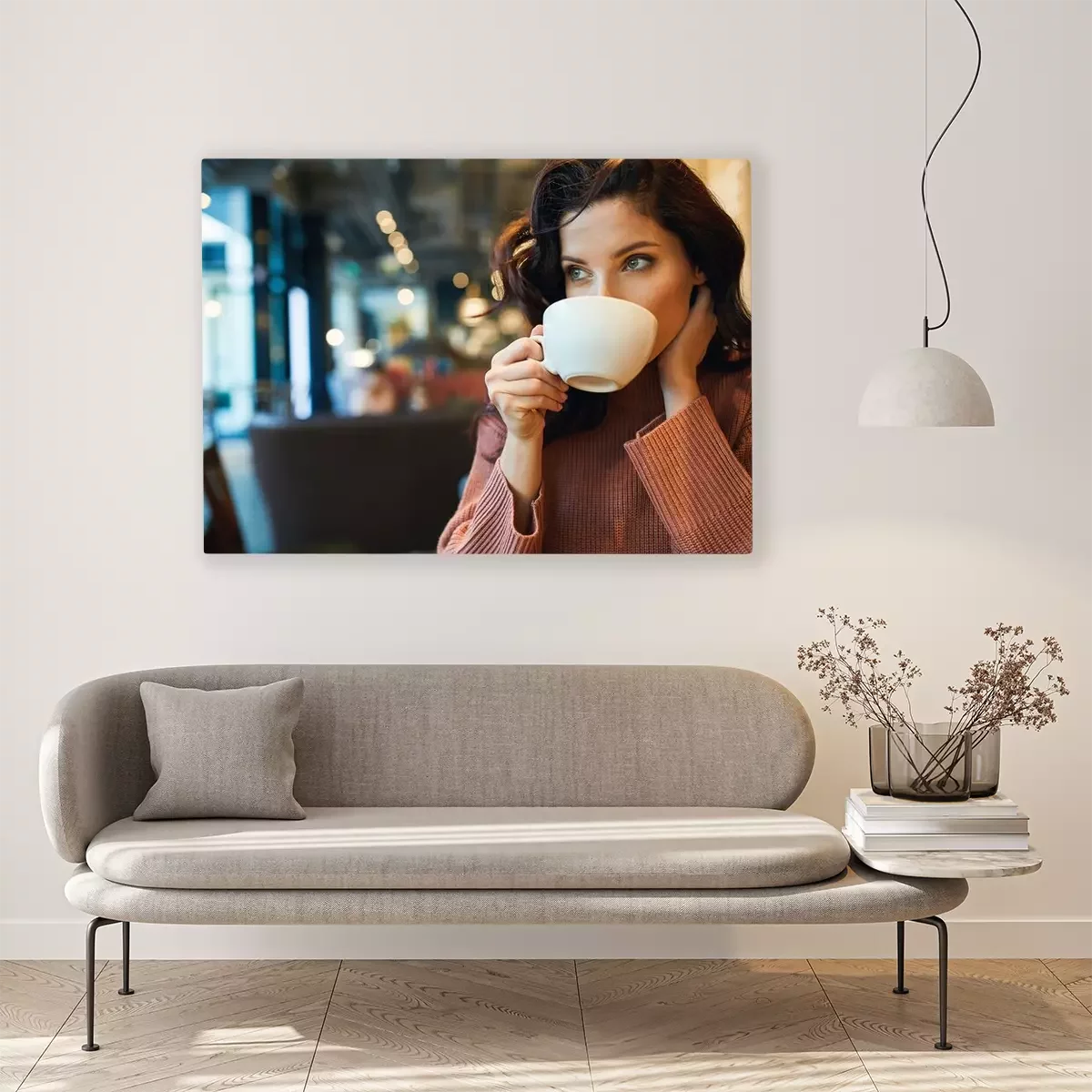 De print wordt aangebracht op hoogwaardig canvas dat op een schildersweefgetouw (spieraam) wordt gespannen. Omdat de print de zijranden bedekt, hoeft het ontwerp niet met een extra kader te worden omlijst. Wij raden ook composities aan die uit meerdere foto's bestaan en zo een coherente compositie vormen.