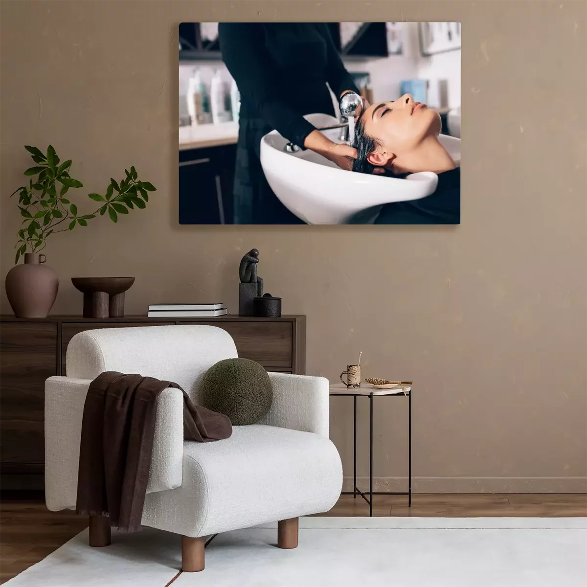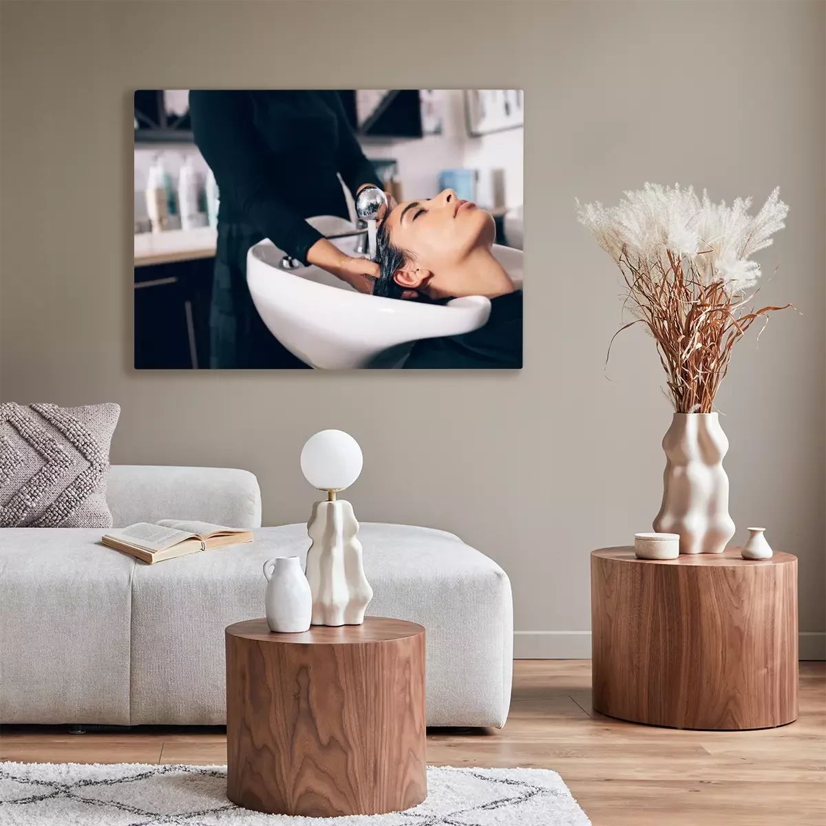 Canvas Vrouw krijgt haar wassen gedaan op salon