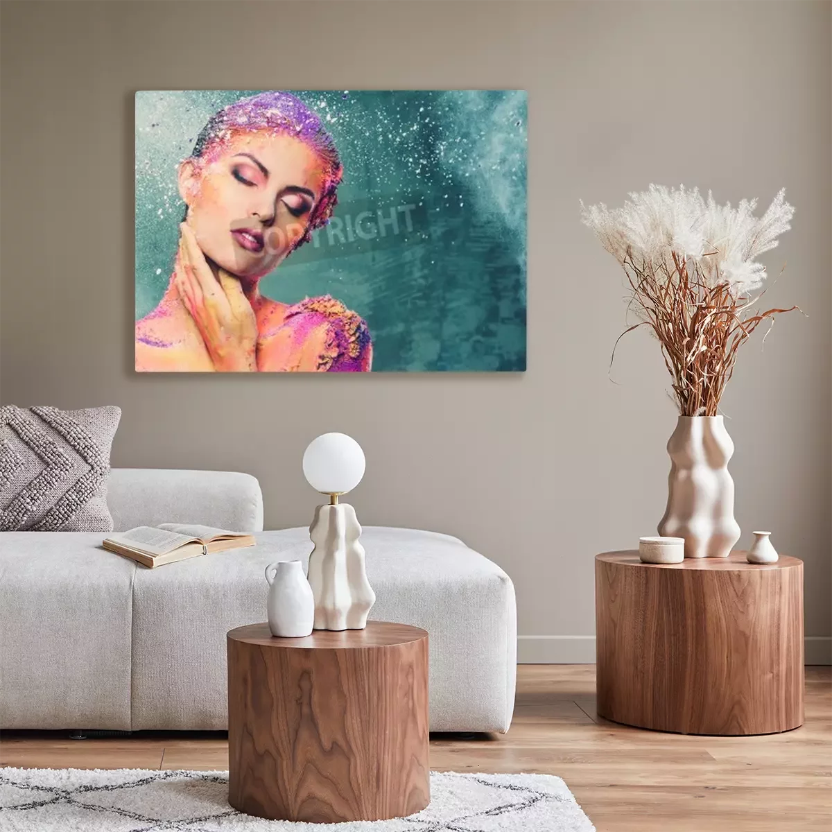 De print wordt aangebracht op hoogwaardig canvas dat op een schildersweefgetouw (spieraam) wordt gespannen. Omdat de print de zijranden bedekt, hoeft het ontwerp niet met een extra kader te worden omlijst. Wij raden ook composities aan die uit meerdere foto's bestaan en zo een coherente compositie vormen.