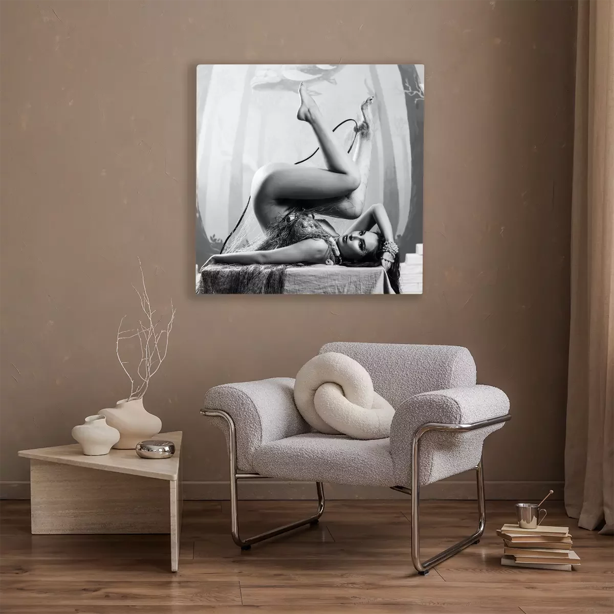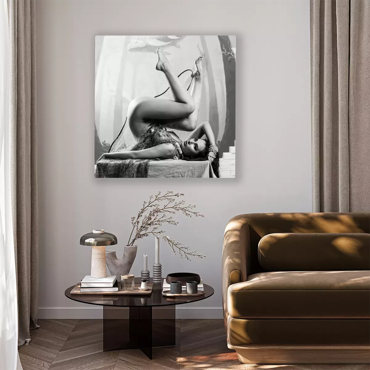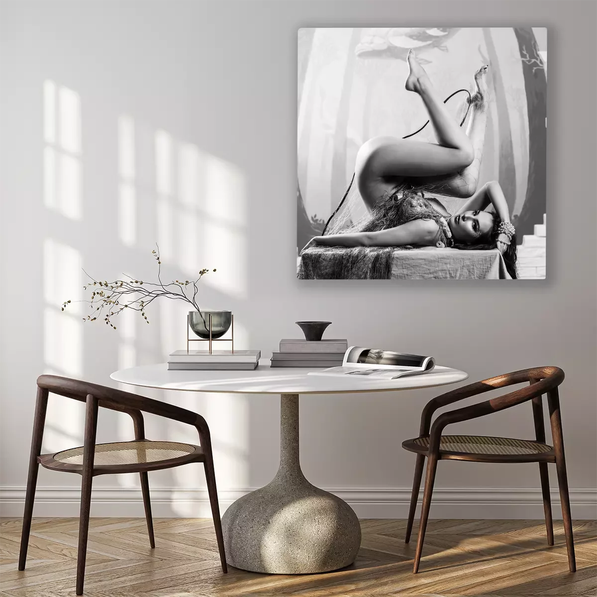 De print wordt aangebracht op hoogwaardig canvas dat op een schildersweefgetouw (spieraam) wordt gespannen. Omdat de print de zijranden bedekt, hoeft het ontwerp niet met een extra kader te worden omlijst. Wij raden ook composities aan die uit meerdere foto's bestaan en zo een coherente compositie vormen.
