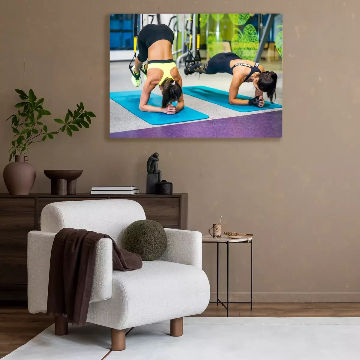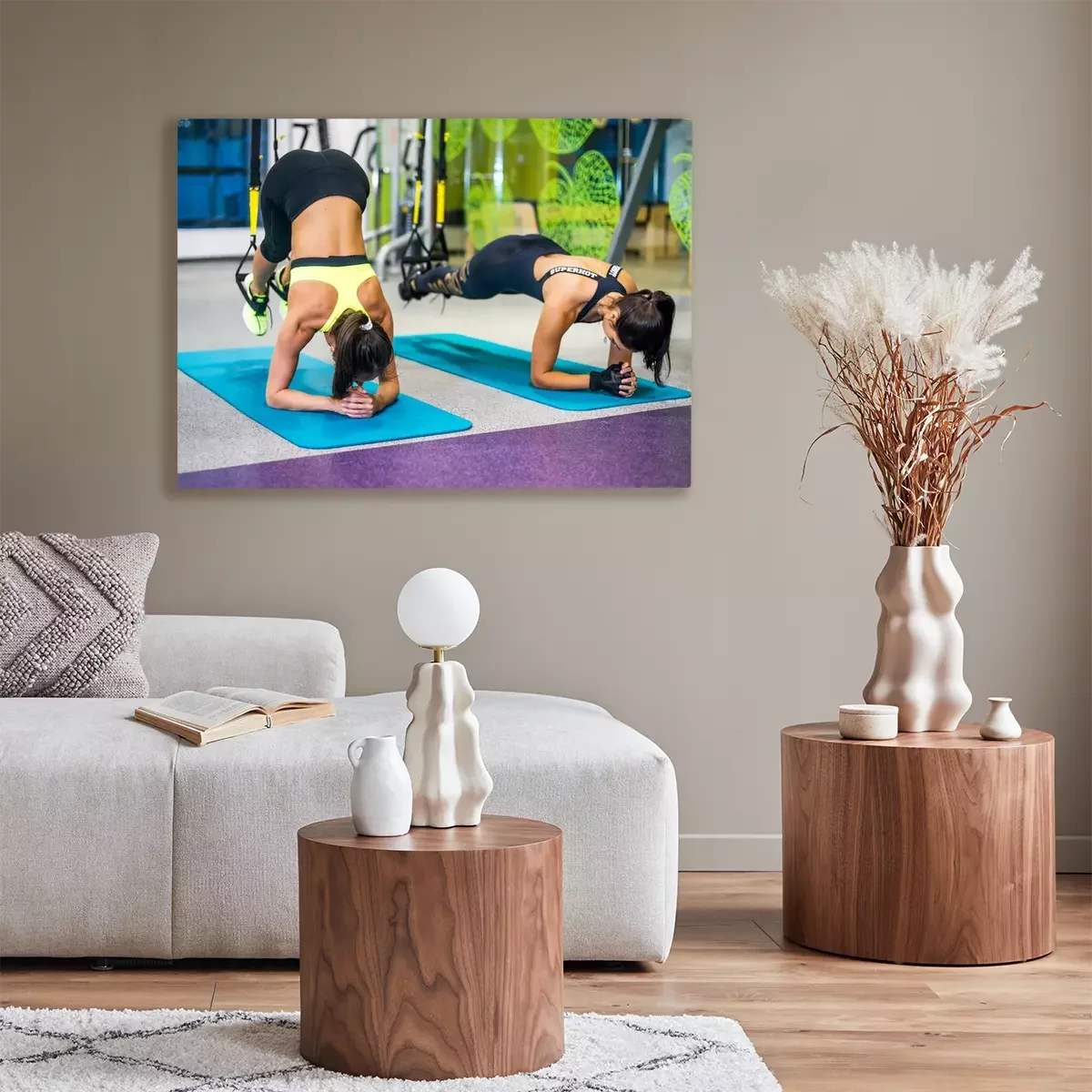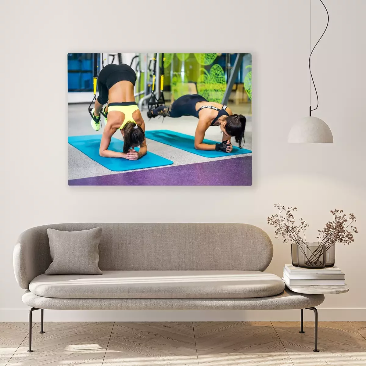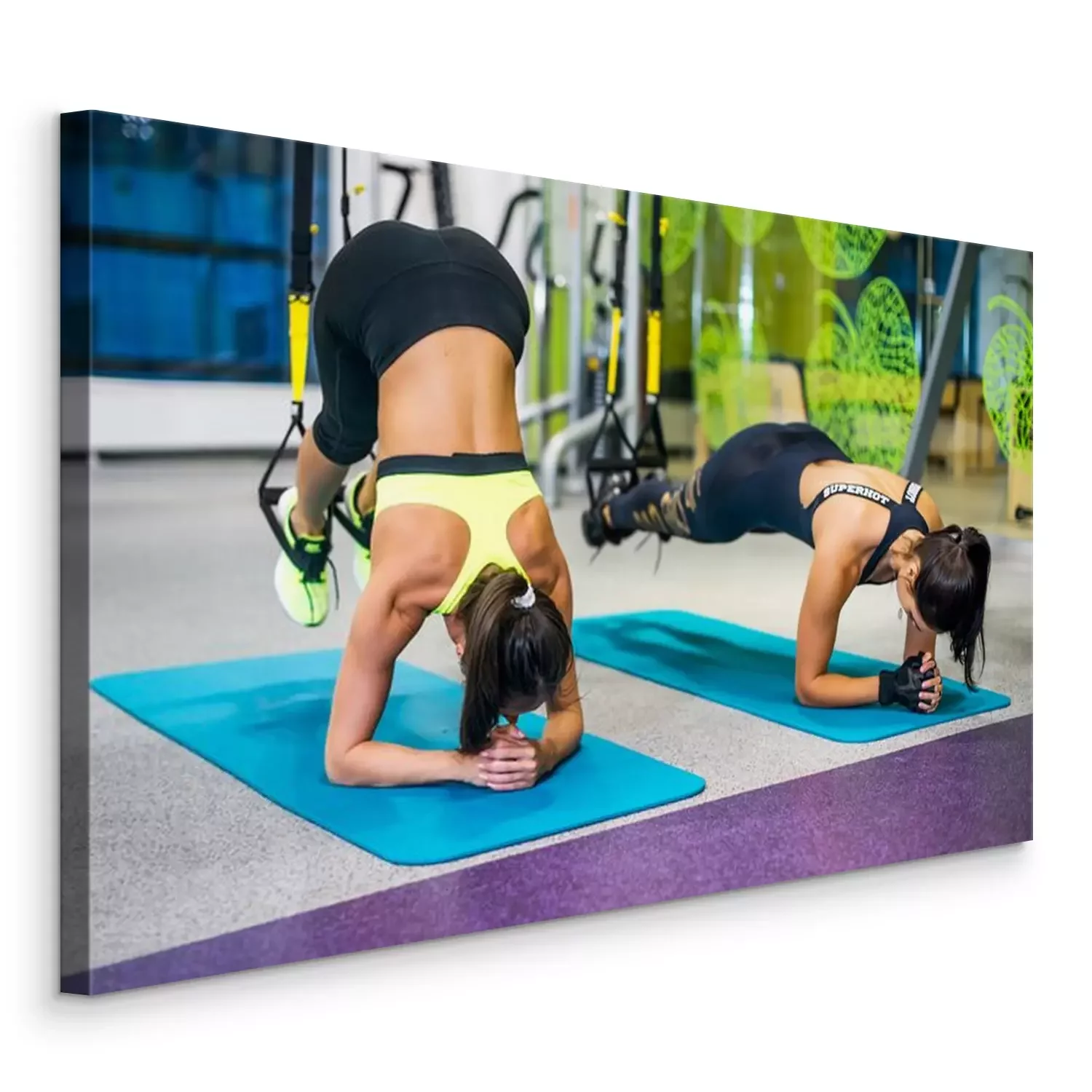 Canvas Vrouw te oefenen met vering bandjes in fitnessclub of sportschool.