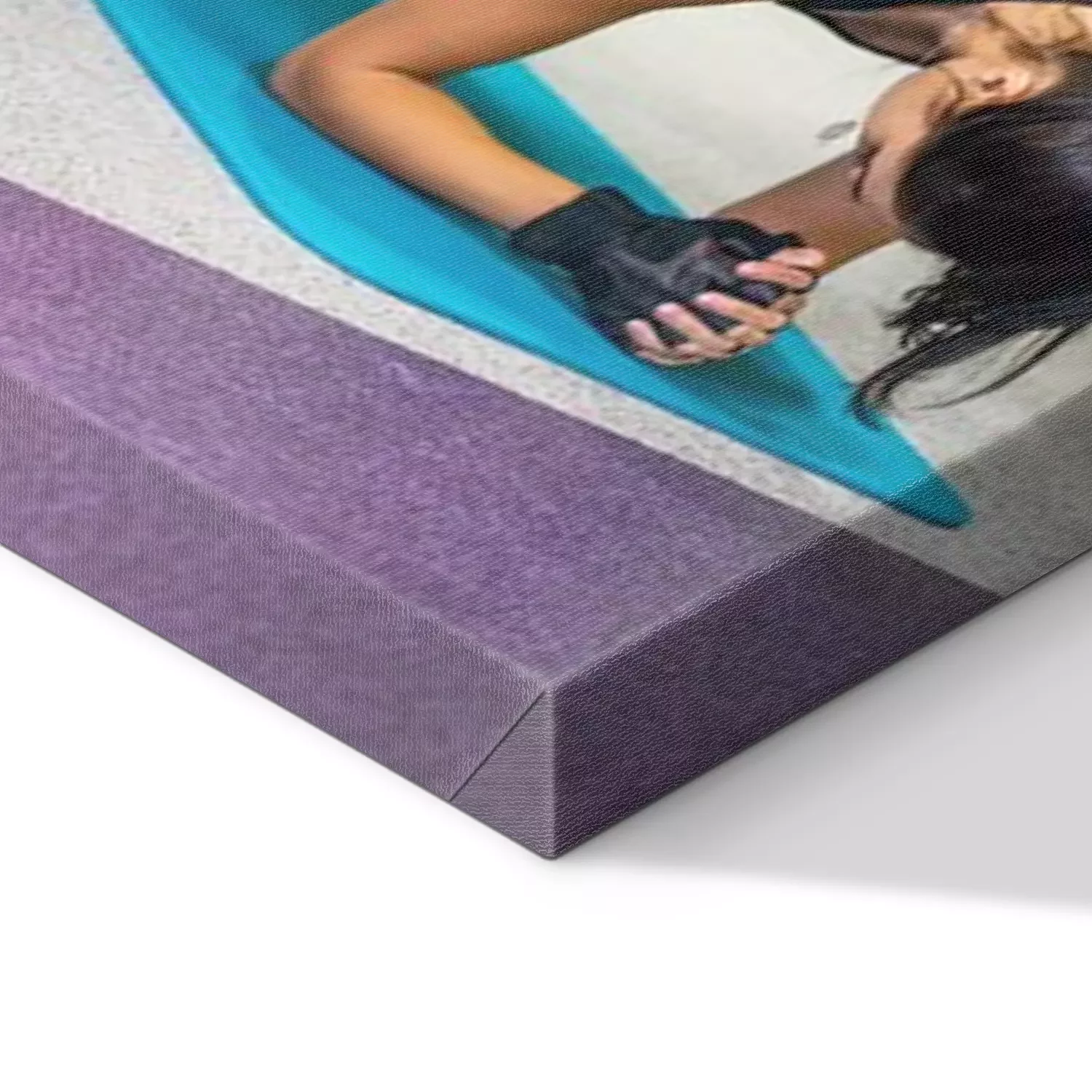 De print wordt aangebracht op hoogwaardig canvas dat op een schildersweefgetouw (spieraam) wordt gespannen. Omdat de print de zijranden bedekt, hoeft het ontwerp niet met een extra kader te worden omlijst. Wij raden ook composities aan die uit meerdere foto's bestaan en zo een coherente compositie vormen.