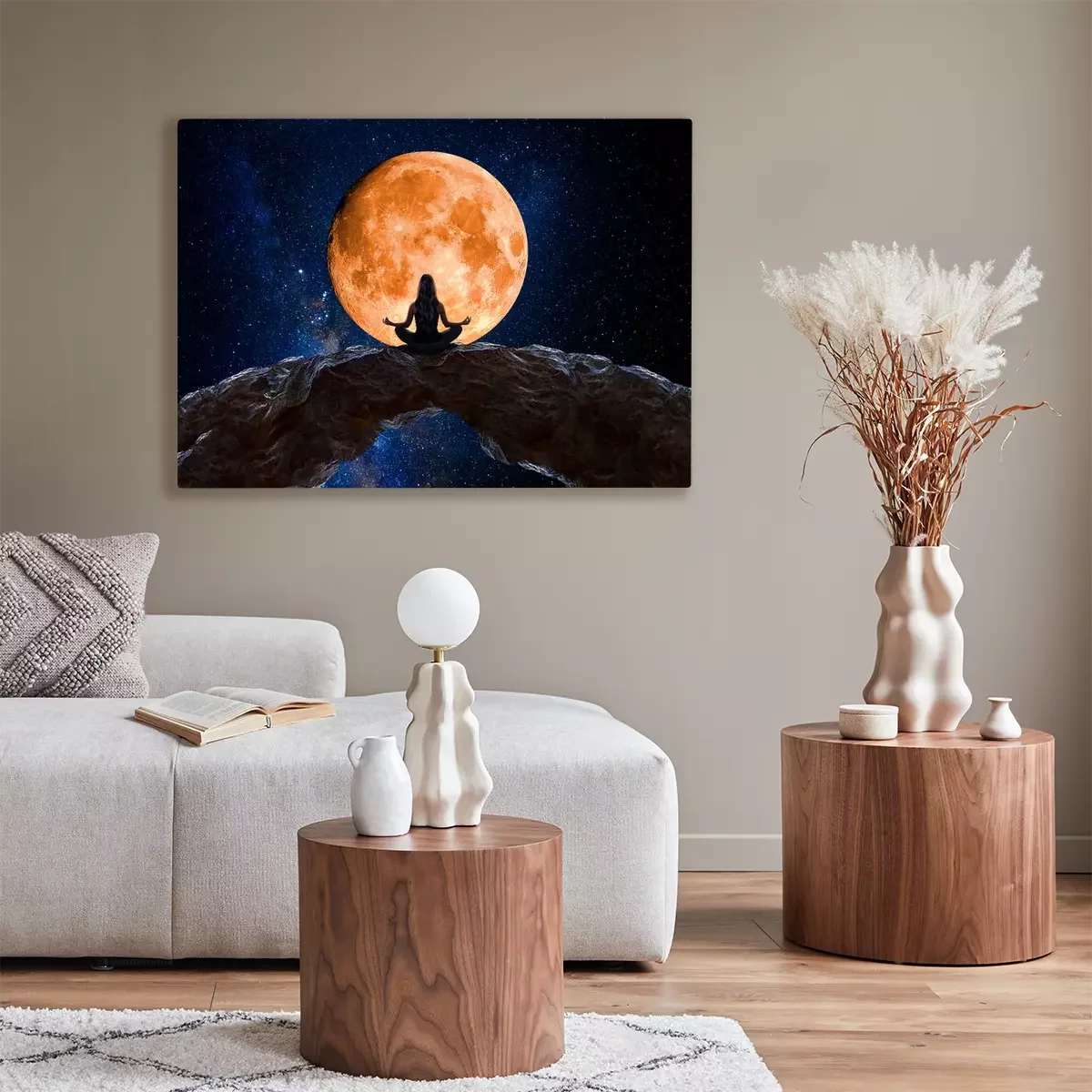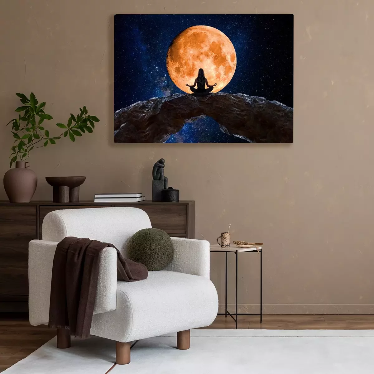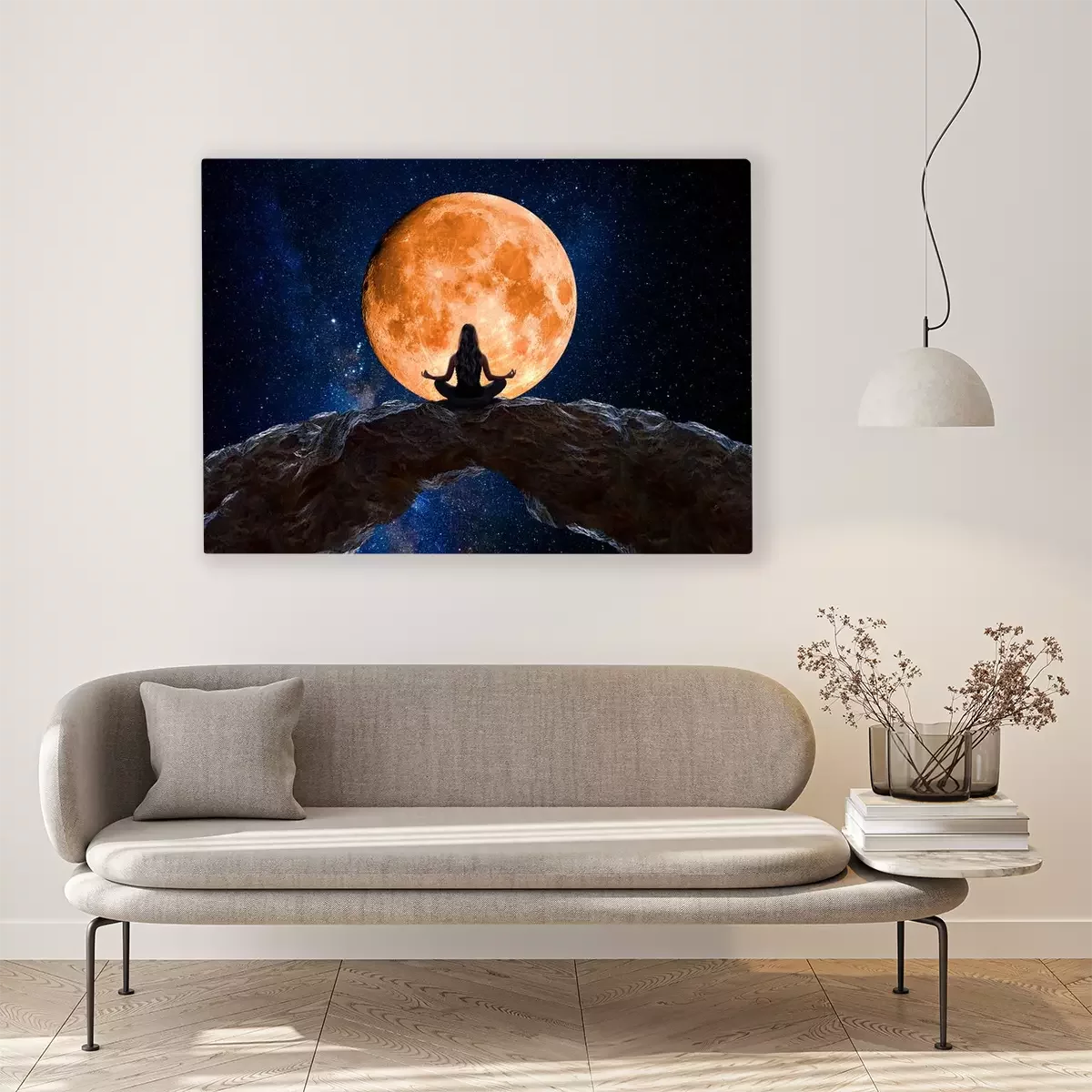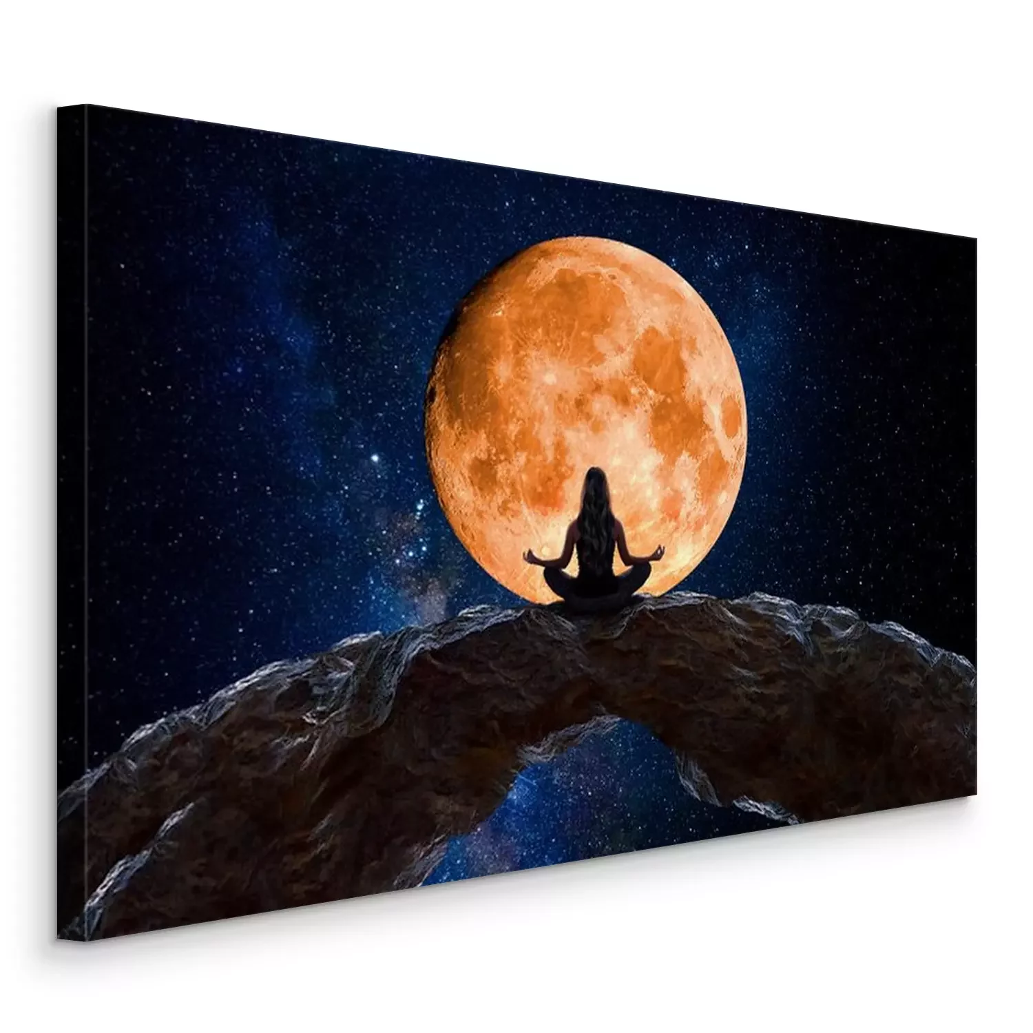 Canvas Vrouw tijdens meditatie aanschouwt het universum