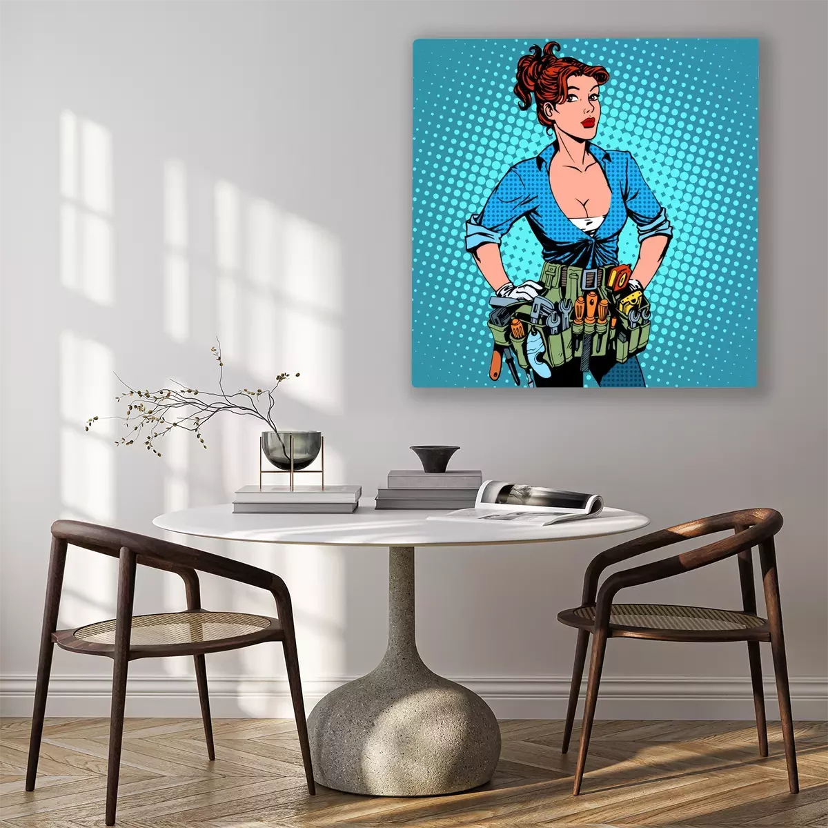 Canvas: vrouw werkt reparateur elektricien