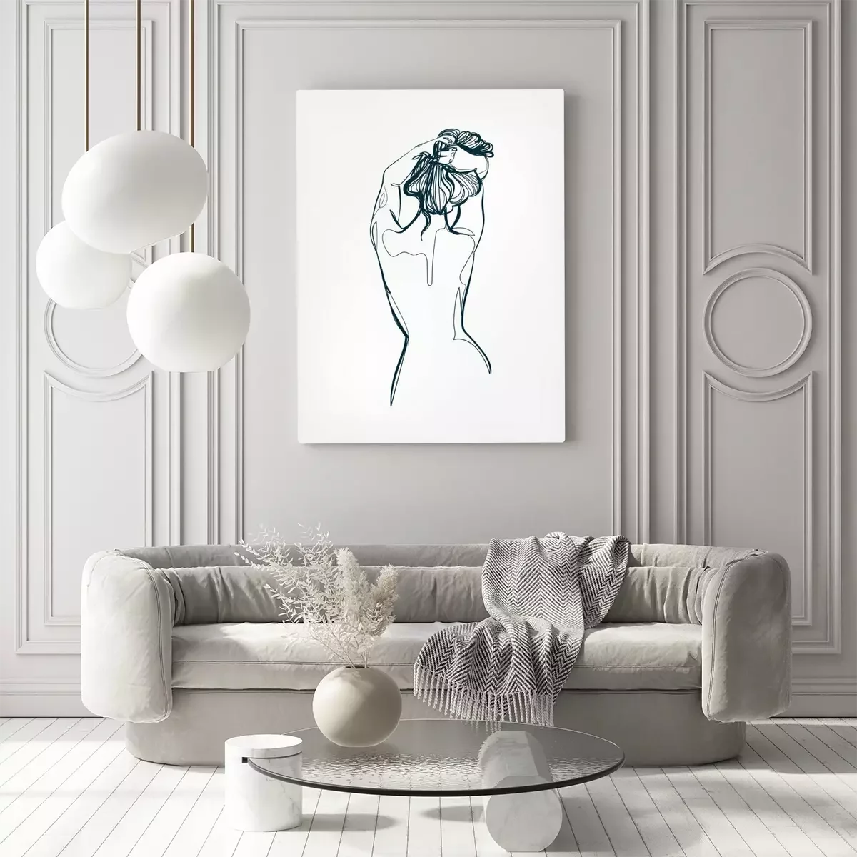 Canvas: Vrouwelijk silhouet in line art stijl