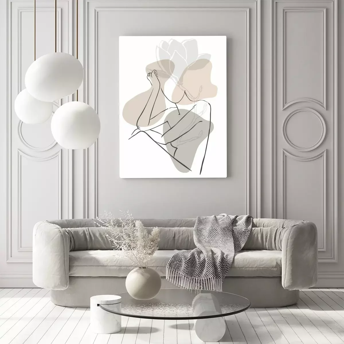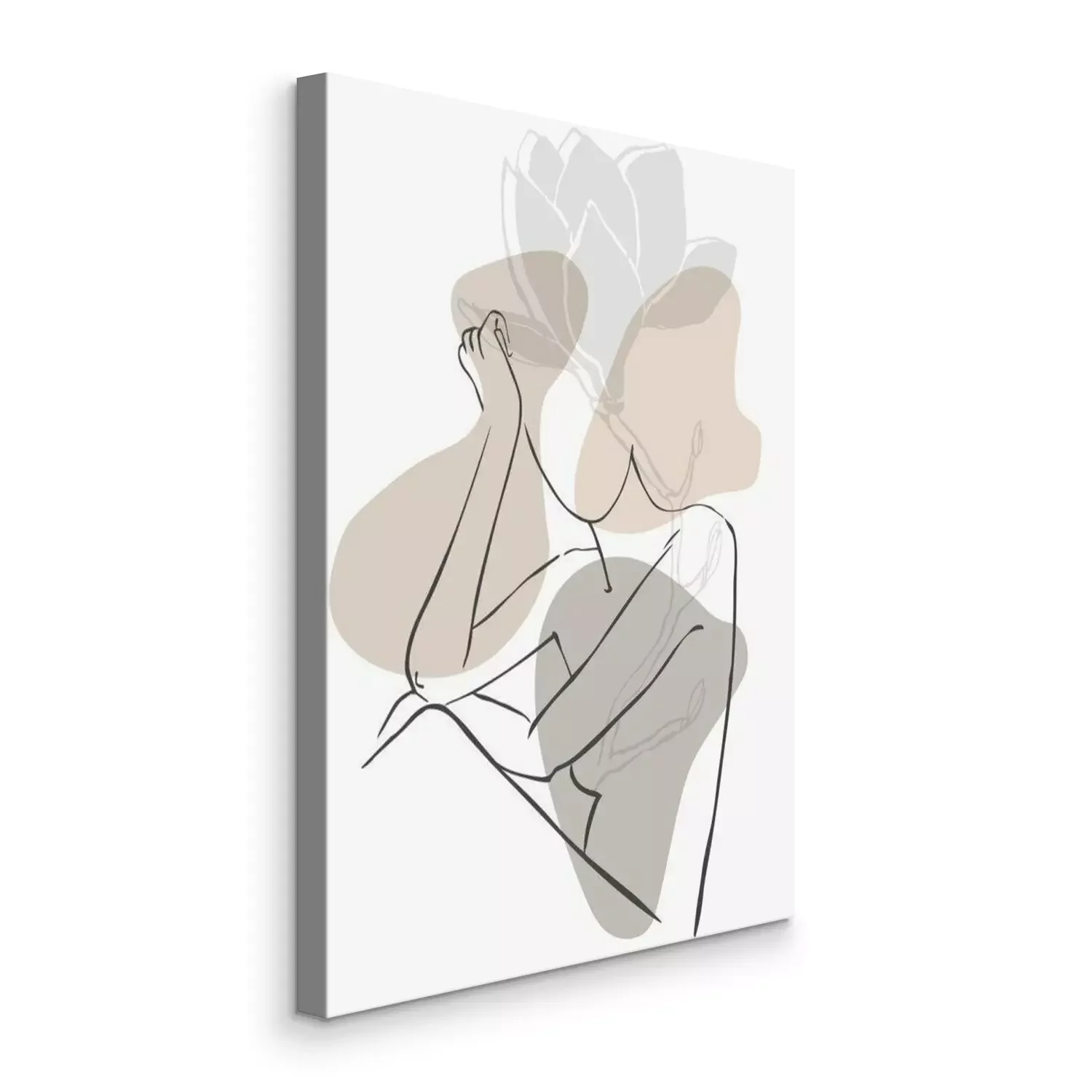 Canvas: Vrouwelijk silhouet met een bloem op de achtergrond