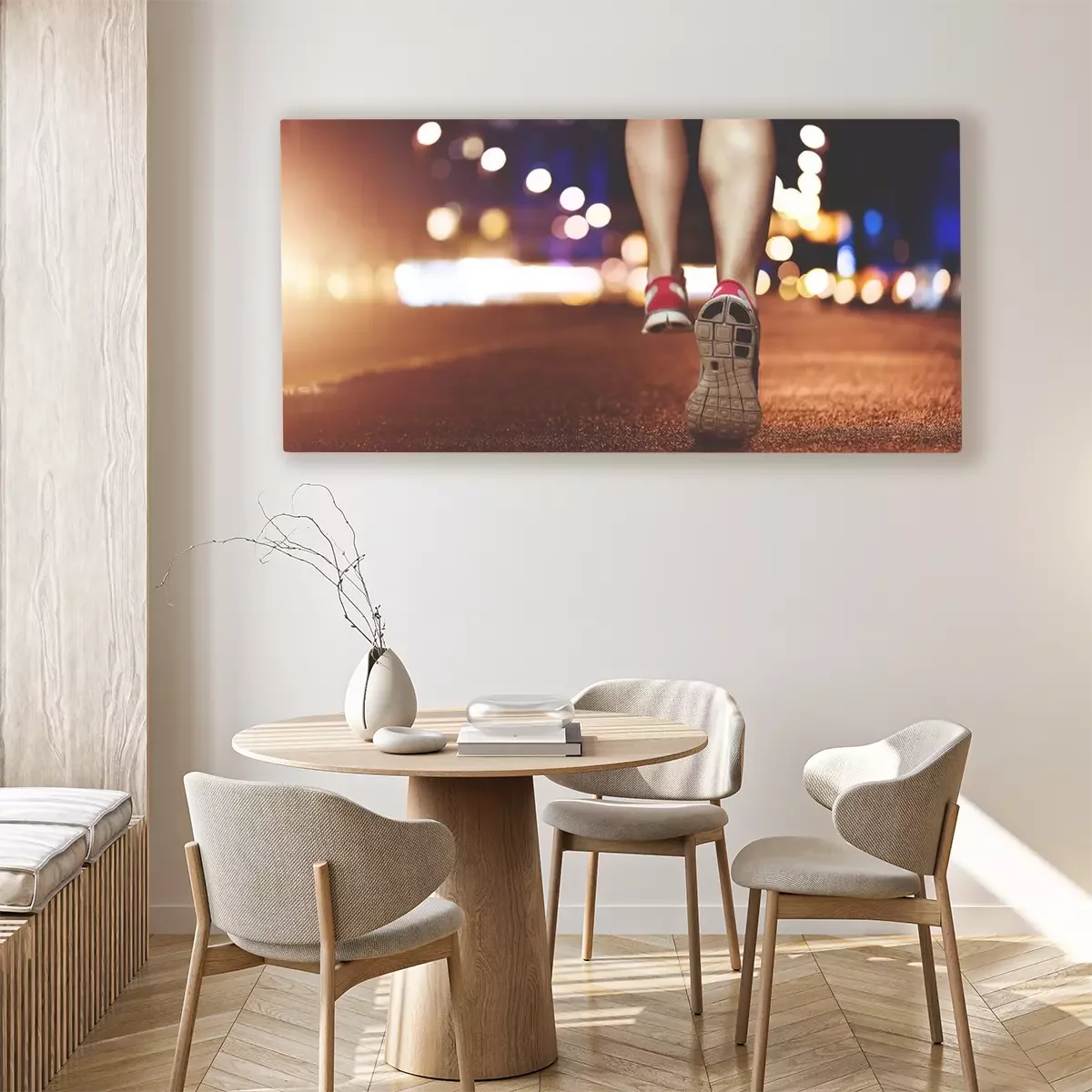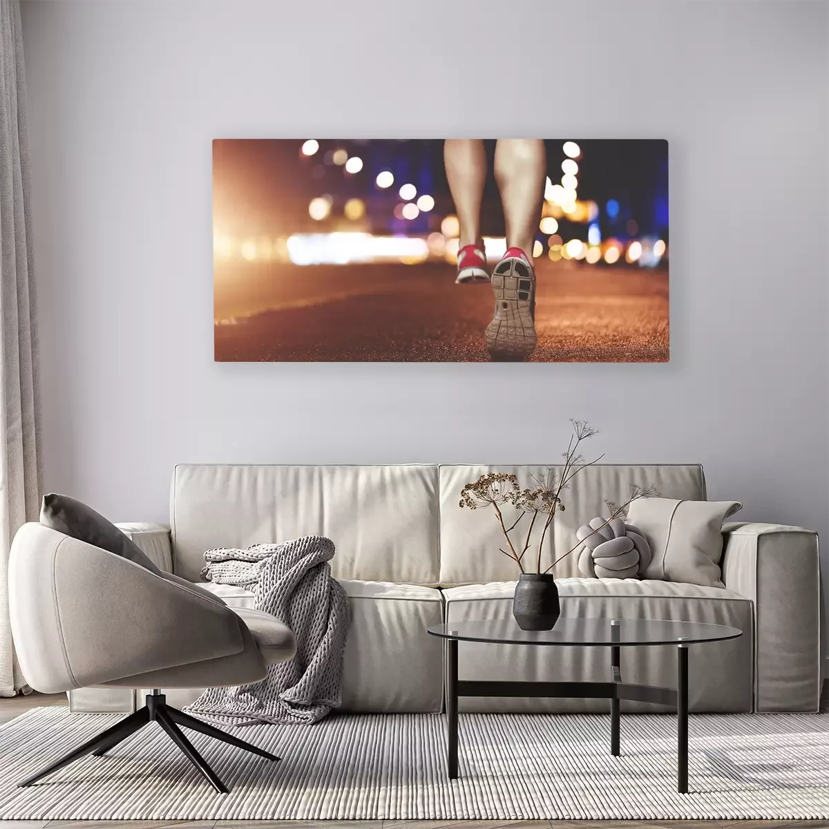 Canvas Vrouwelijke benen loopt door stedelijke omgeving