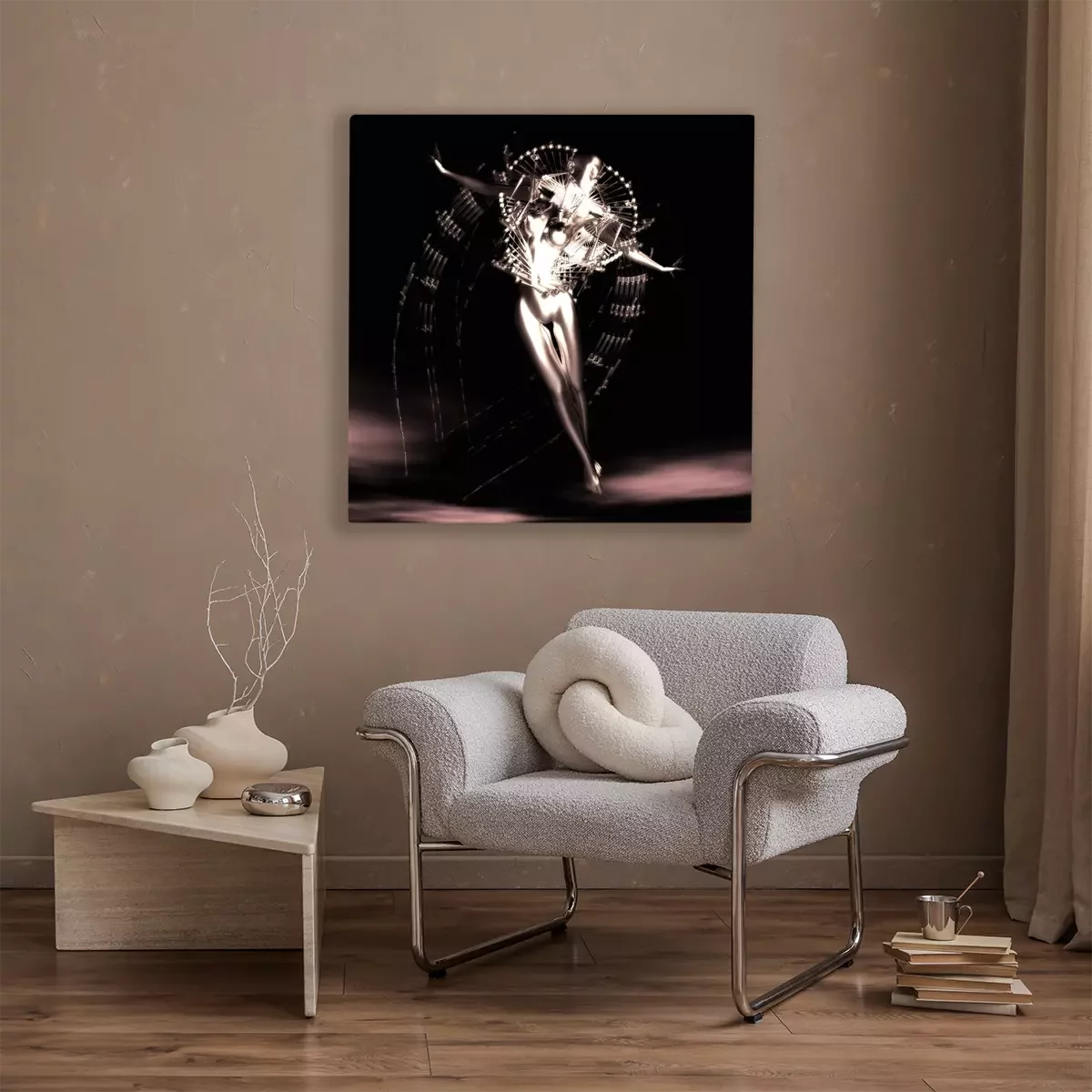 De print wordt aangebracht op hoogwaardig canvas dat op een schildersweefgetouw (spieraam) wordt gespannen. Omdat de print de zijranden bedekt, hoeft het ontwerp niet met een extra kader te worden omlijst. Wij raden ook composities aan die uit meerdere foto's bestaan en zo een coherente compositie vormen.