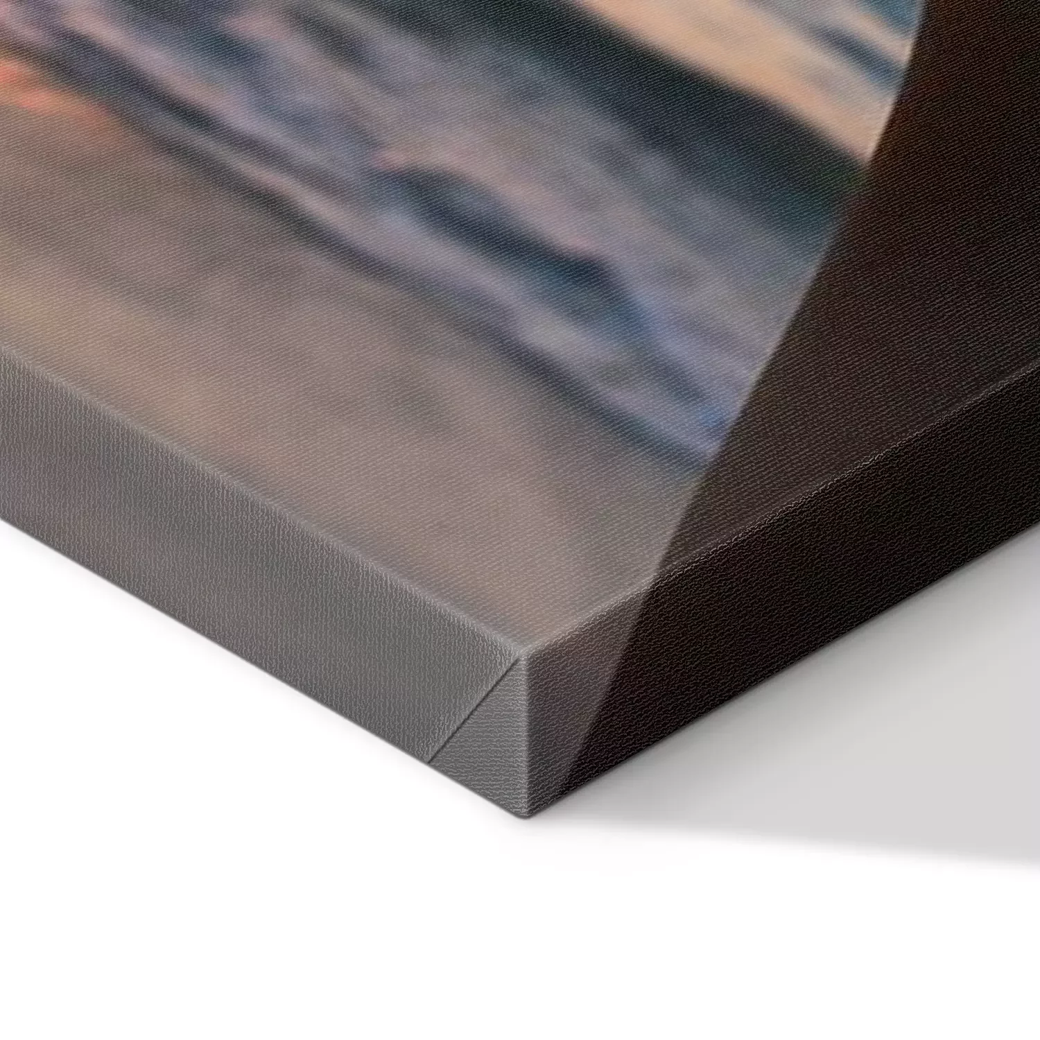 De print wordt aangebracht op hoogwaardig canvas dat op een schildersweefgetouw (spieraam) wordt gespannen. Omdat de print de zijranden bedekt, hoeft het ontwerp niet met een extra kader te worden omlijst. Wij raden ook composities aan die uit meerdere foto's bestaan en zo een coherente compositie vormen.