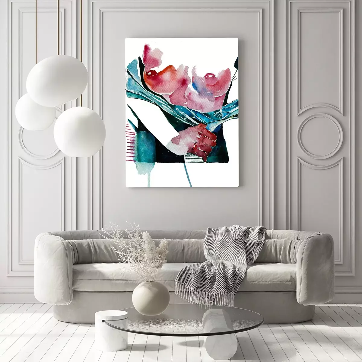 Canvas: Vrouwenbuste geschilderd in aquarel