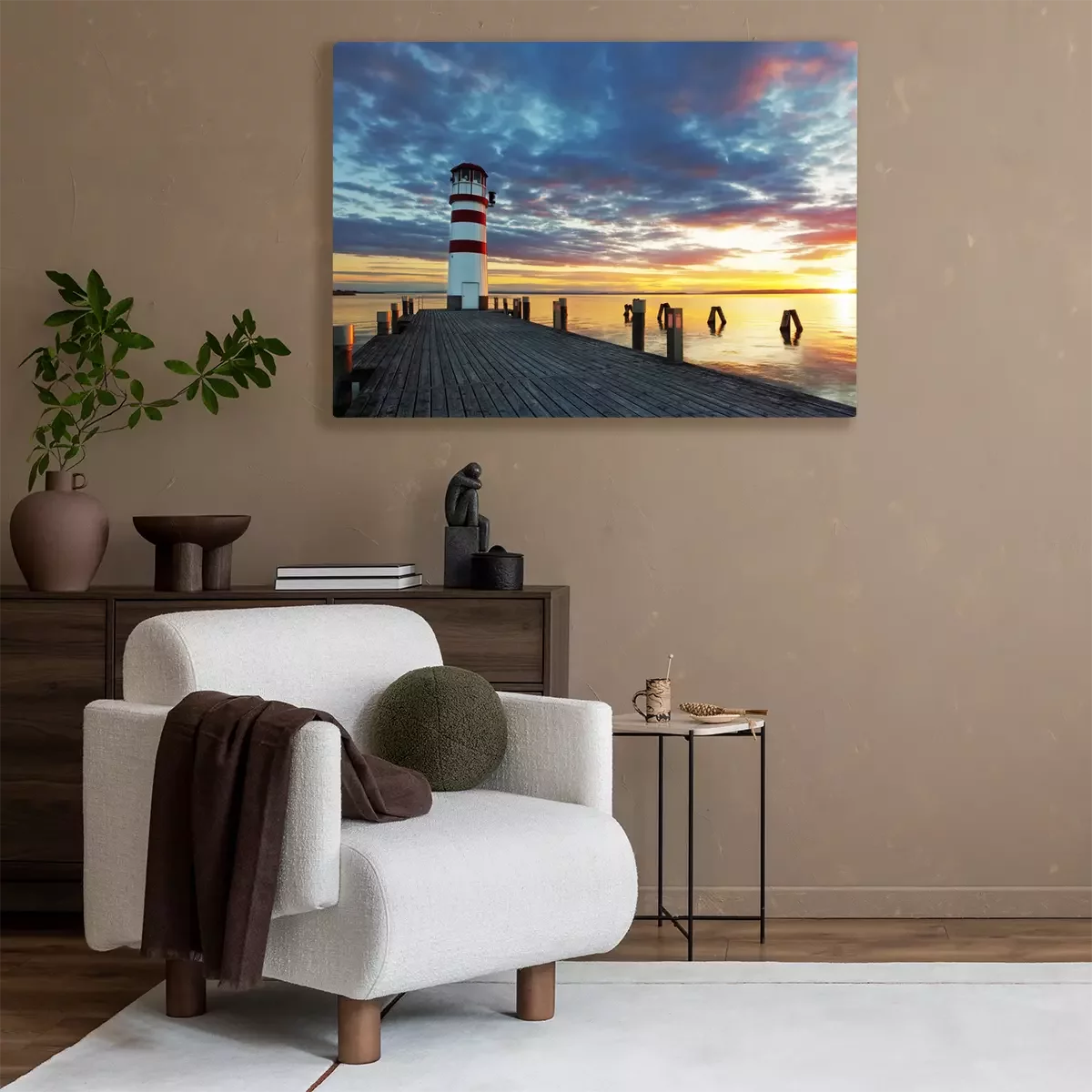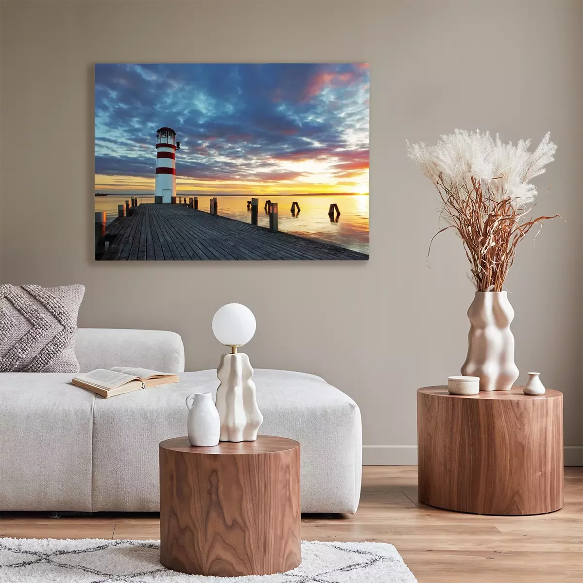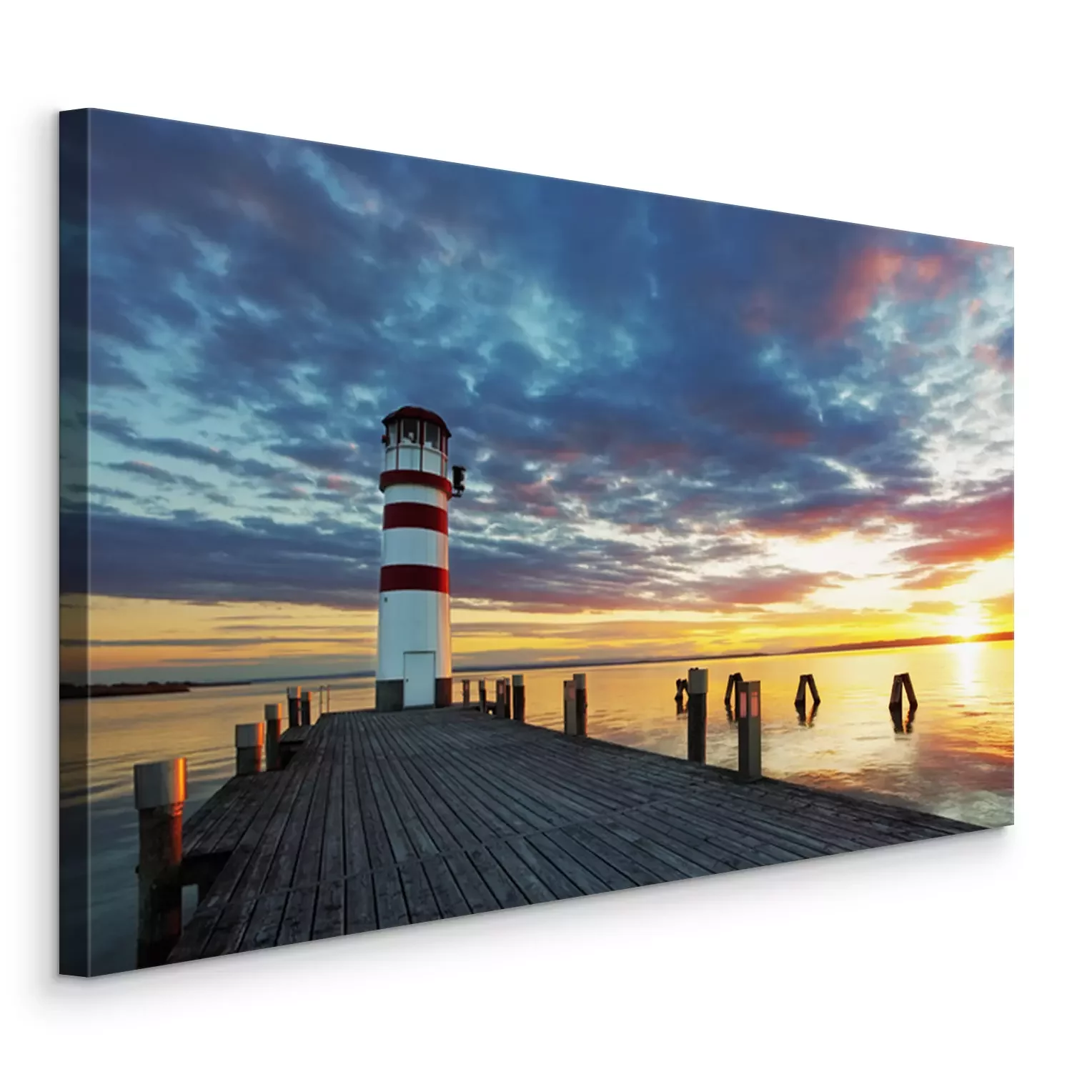 Canvas: Vuurtoren bij Meer Neusiedl bij zonsondergang