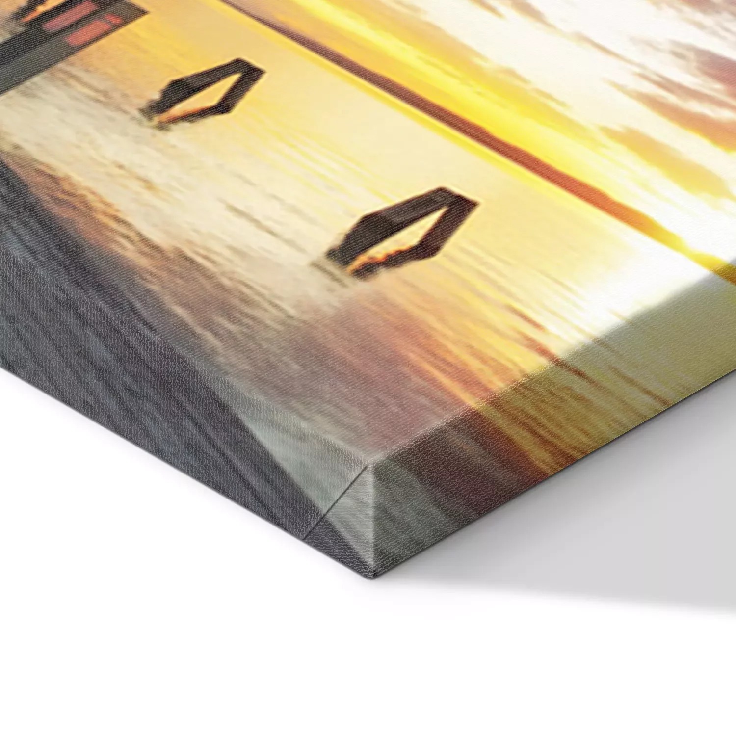 De print wordt aangebracht op hoogwaardig canvas dat op een schildersweefgetouw (spieraam) wordt gespannen. Omdat de print de zijranden bedekt, hoeft het ontwerp niet met een extra kader te worden omlijst. Wij raden ook composities aan die uit meerdere foto's bestaan en zo een coherente compositie vormen.