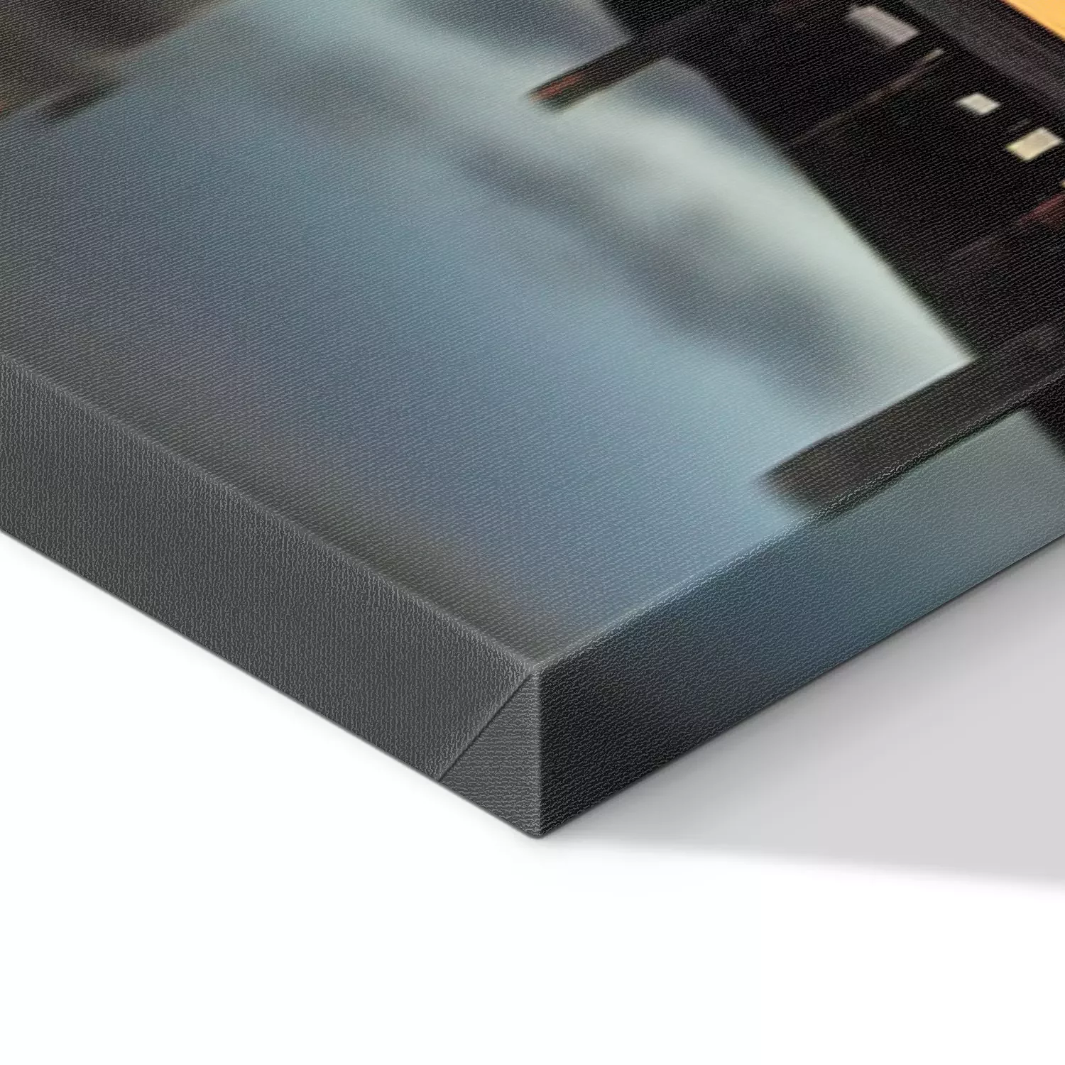 De print wordt aangebracht op hoogwaardig canvas dat op een schildersweefgetouw (spieraam) wordt gespannen. Omdat de print de zijranden bedekt, hoeft het ontwerp niet met een extra kader te worden omlijst. Wij raden ook composities aan die uit meerdere foto's bestaan en zo een coherente compositie vormen.