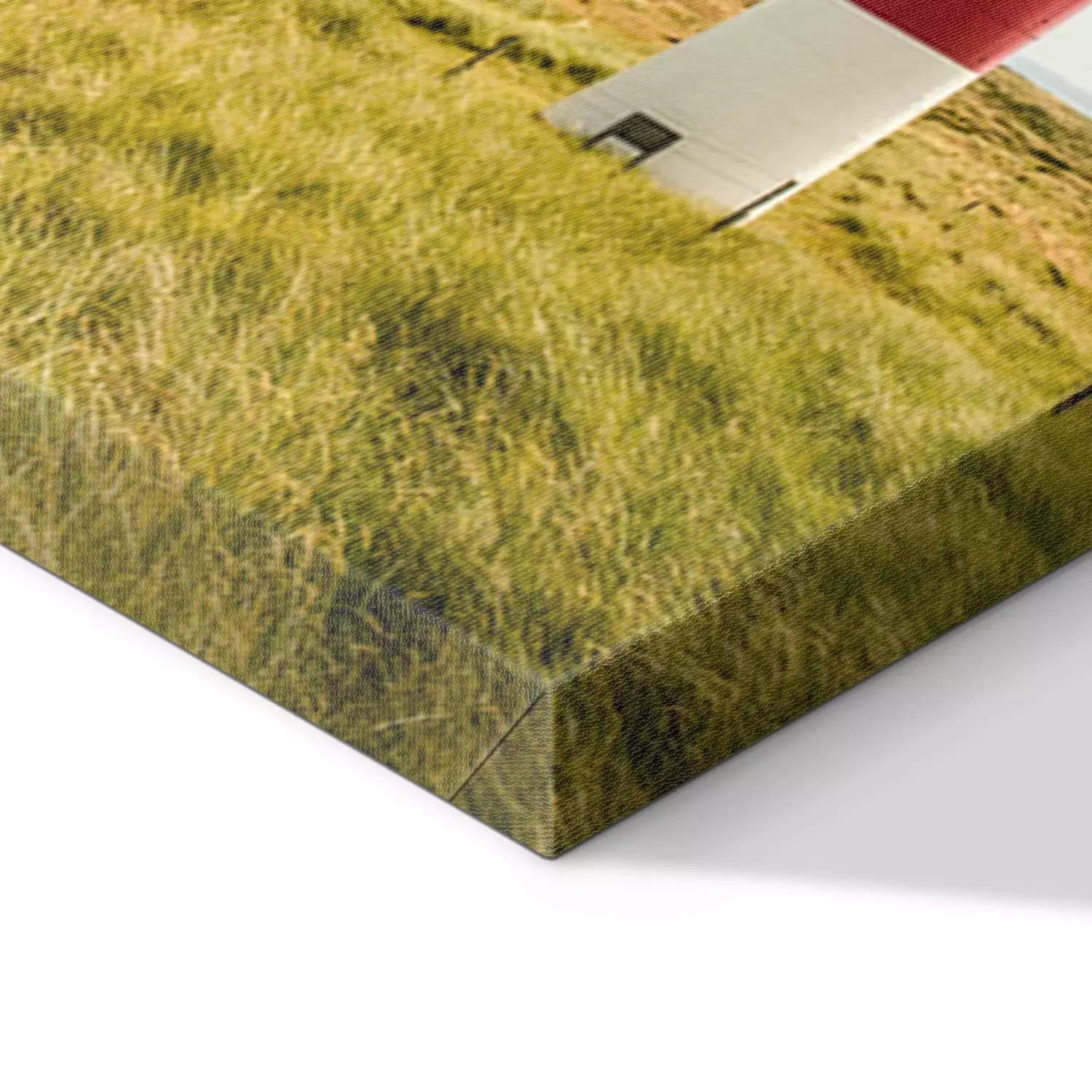 De print wordt aangebracht op hoogwaardig canvas dat op een schildersweefgetouw (spieraam) wordt gespannen. Omdat de print de zijranden bedekt, hoeft het ontwerp niet met een extra kader te worden omlijst. Wij raden ook composities aan die uit meerdere foto's bestaan en zo een coherente compositie vormen.