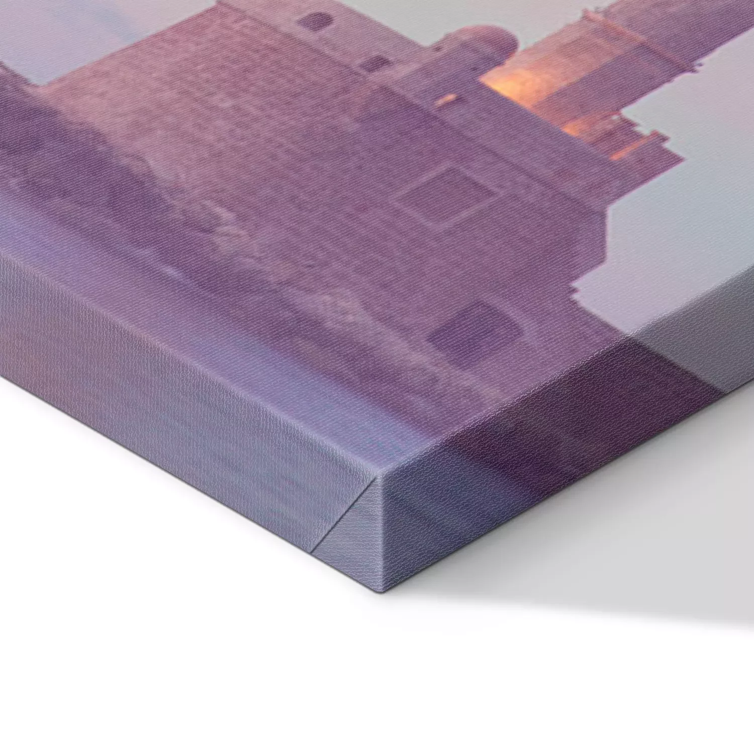 De print wordt aangebracht op hoogwaardig canvas dat op een schildersweefgetouw (spieraam) wordt gespannen. Omdat de print de zijranden bedekt, hoeft het ontwerp niet met een extra kader te worden omlijst. Wij raden ook composities aan die uit meerdere foto's bestaan en zo een coherente compositie vormen.