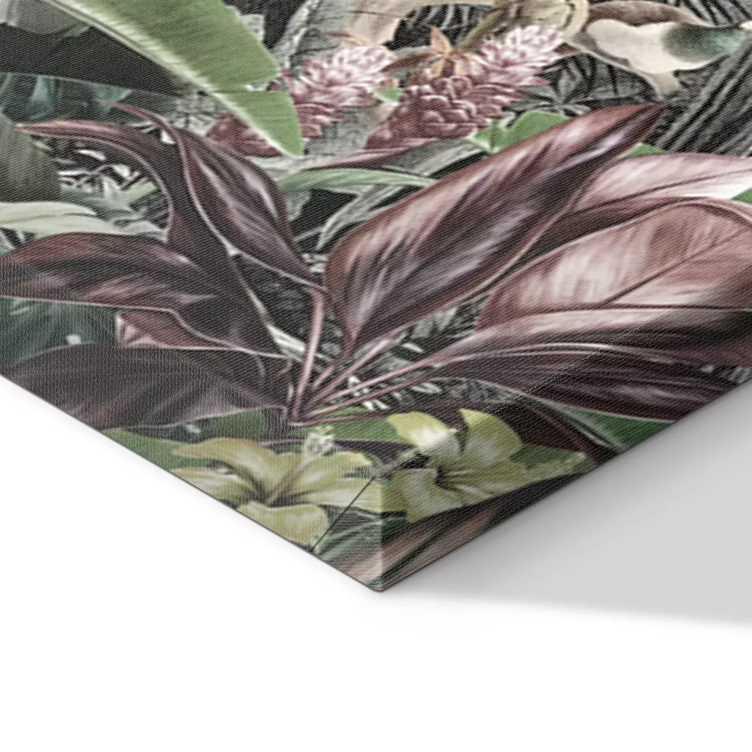 Canvas wallpaper jungle and tropical forest flamngo and tropical birds, old drawing vintage peacock