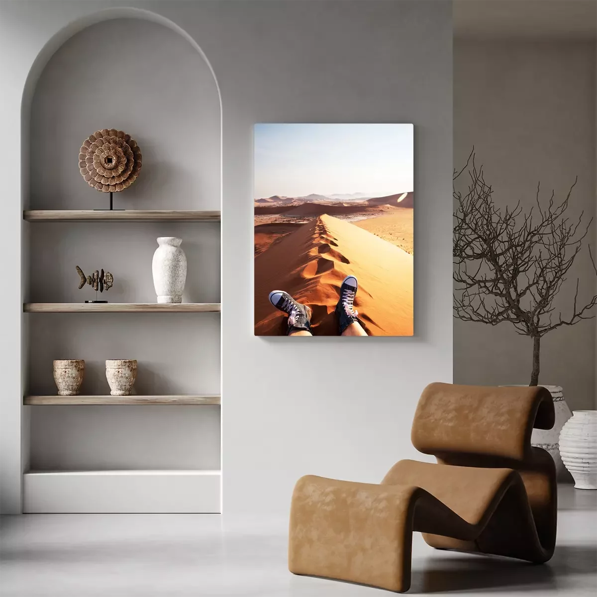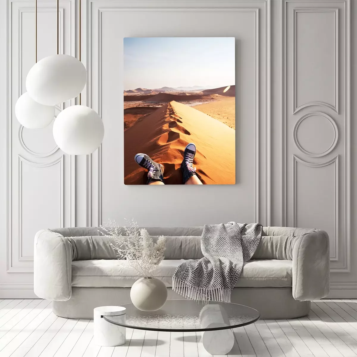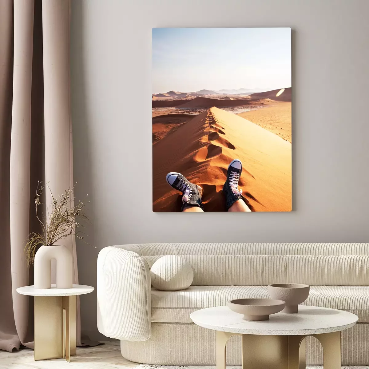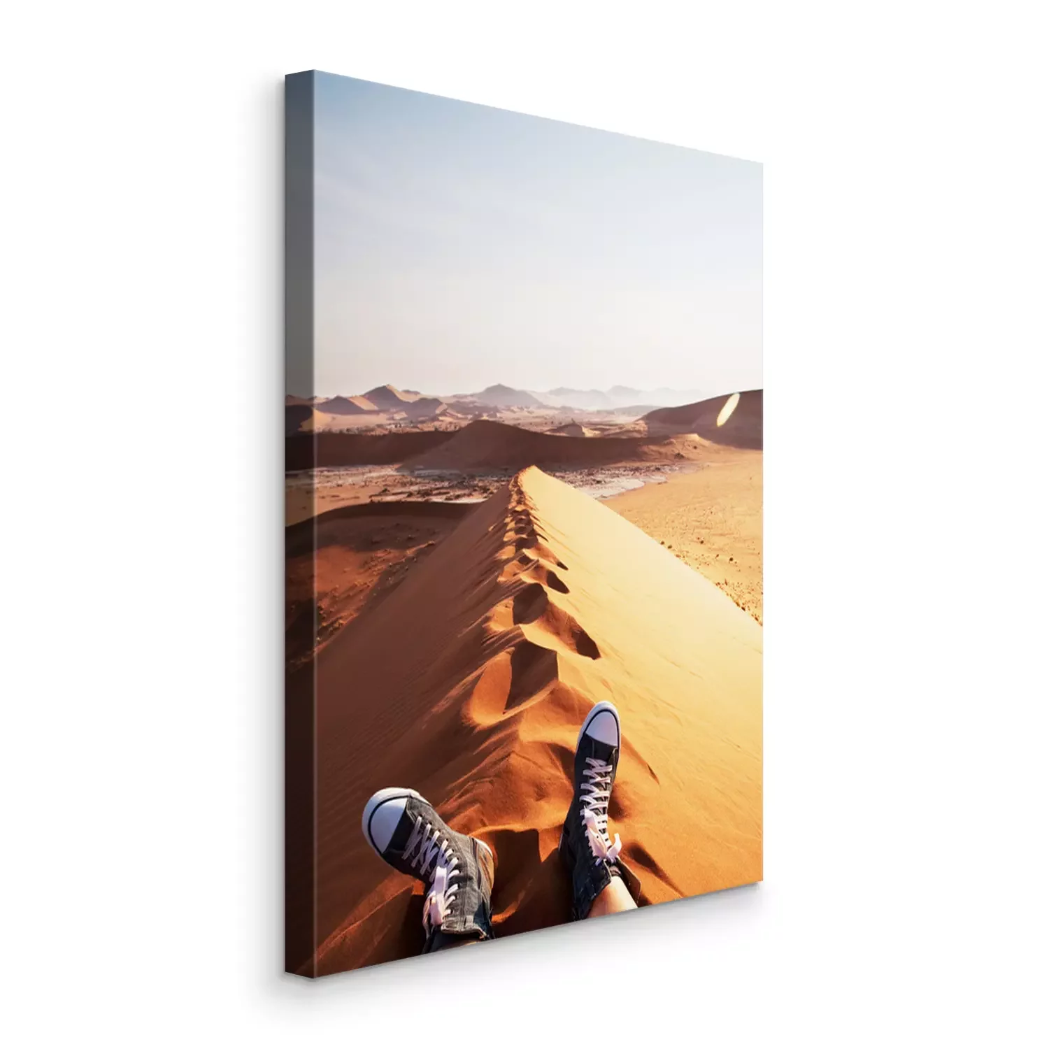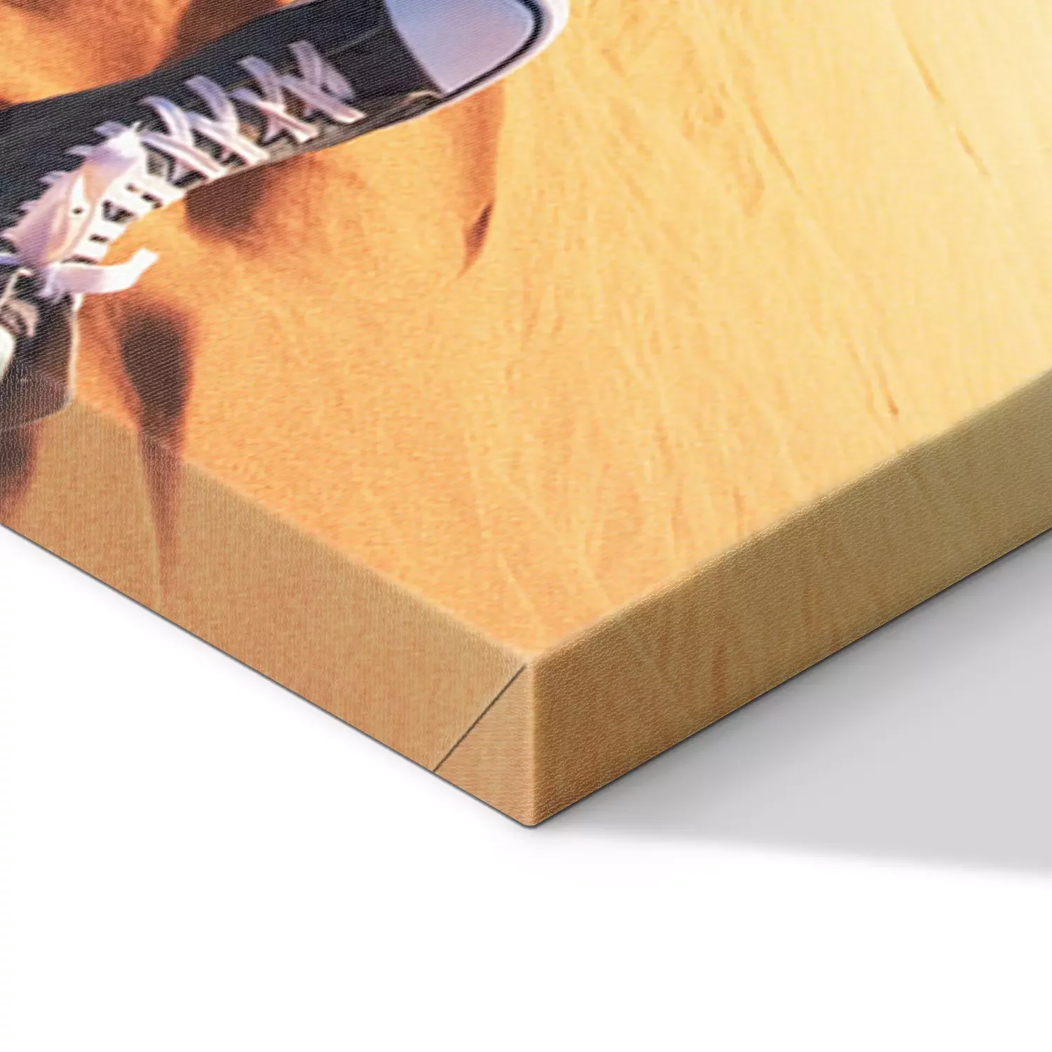 De print wordt aangebracht op hoogwaardig canvas dat op een schildersweefgetouw (spieraam) wordt gespannen. Omdat de print de zijranden bedekt, hoeft het ontwerp niet met een extra kader te worden omlijst. Wij raden ook composities aan die uit meerdere foto's bestaan en zo een coherente compositie vormen.