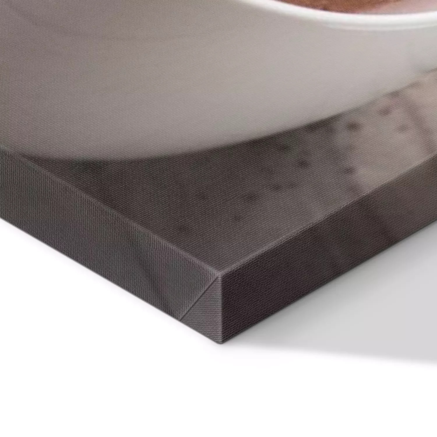 De print wordt aangebracht op hoogwaardig canvas dat op een schildersweefgetouw (spieraam) wordt gespannen. Omdat de print de zijranden bedekt, hoeft het ontwerp niet met een extra kader te worden omlijst. Wij raden ook composities aan die uit meerdere foto's bestaan en zo een coherente compositie vormen.