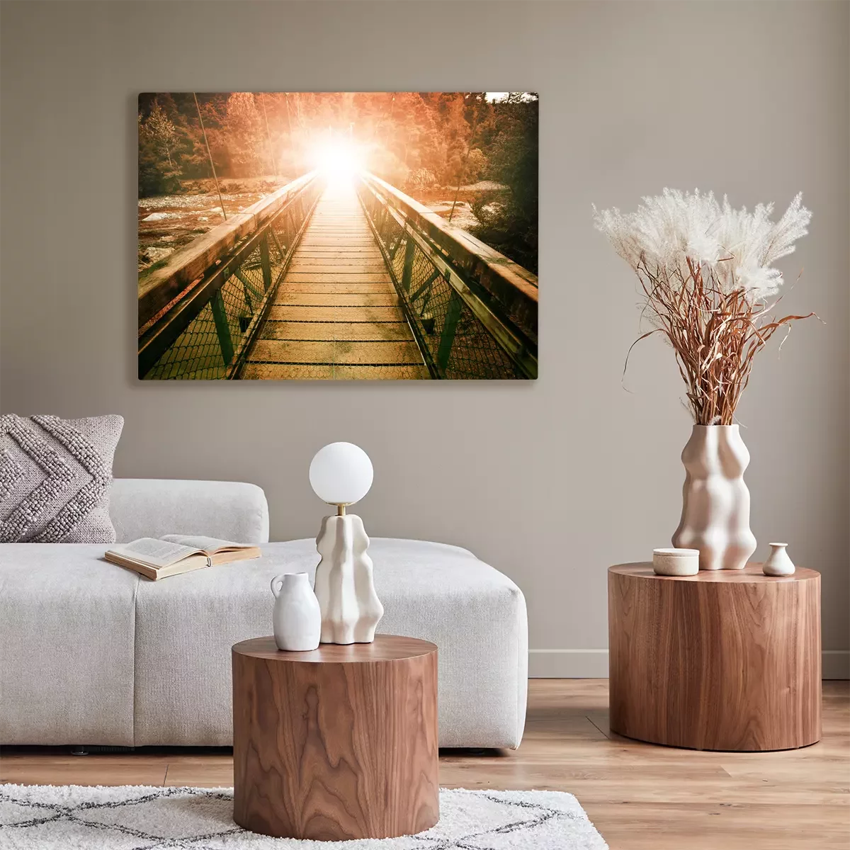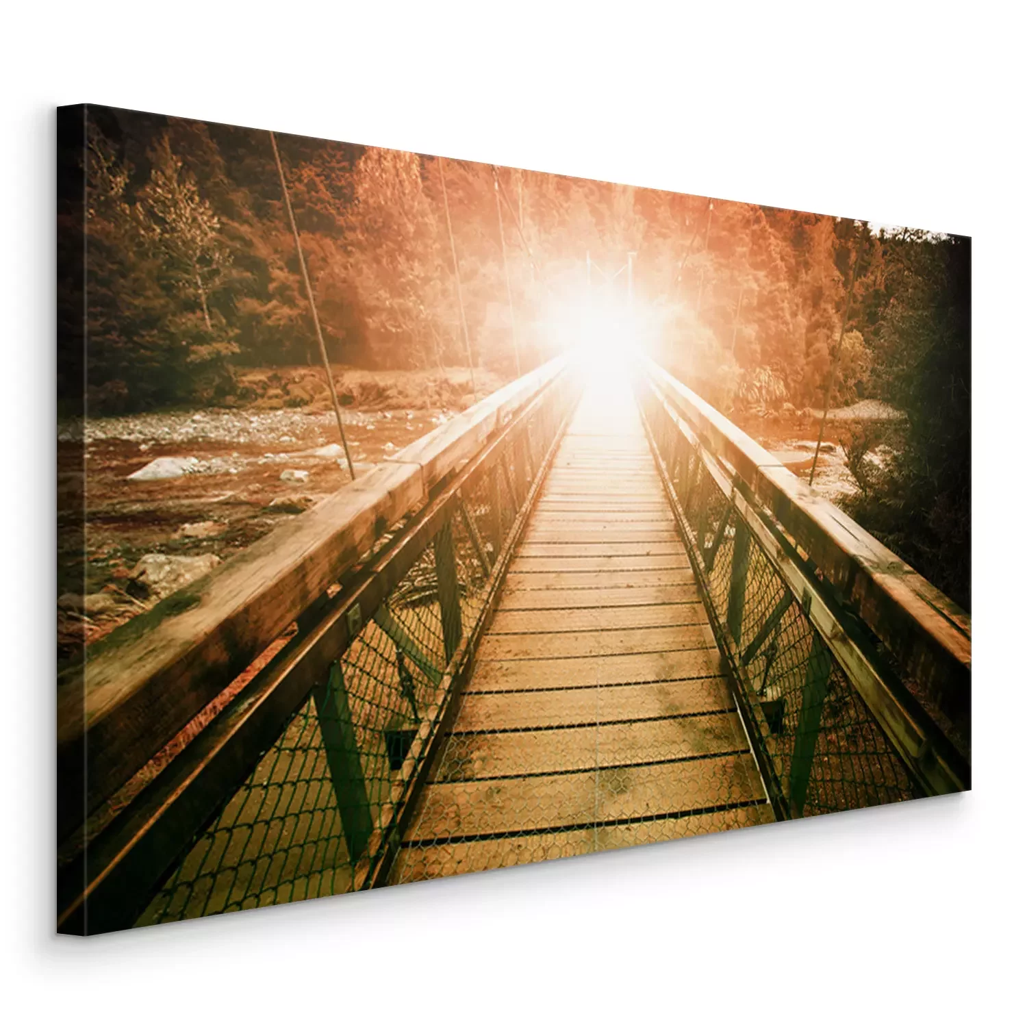 Canvas warp licht aan het einde van de hangbrug kruising stoom wil