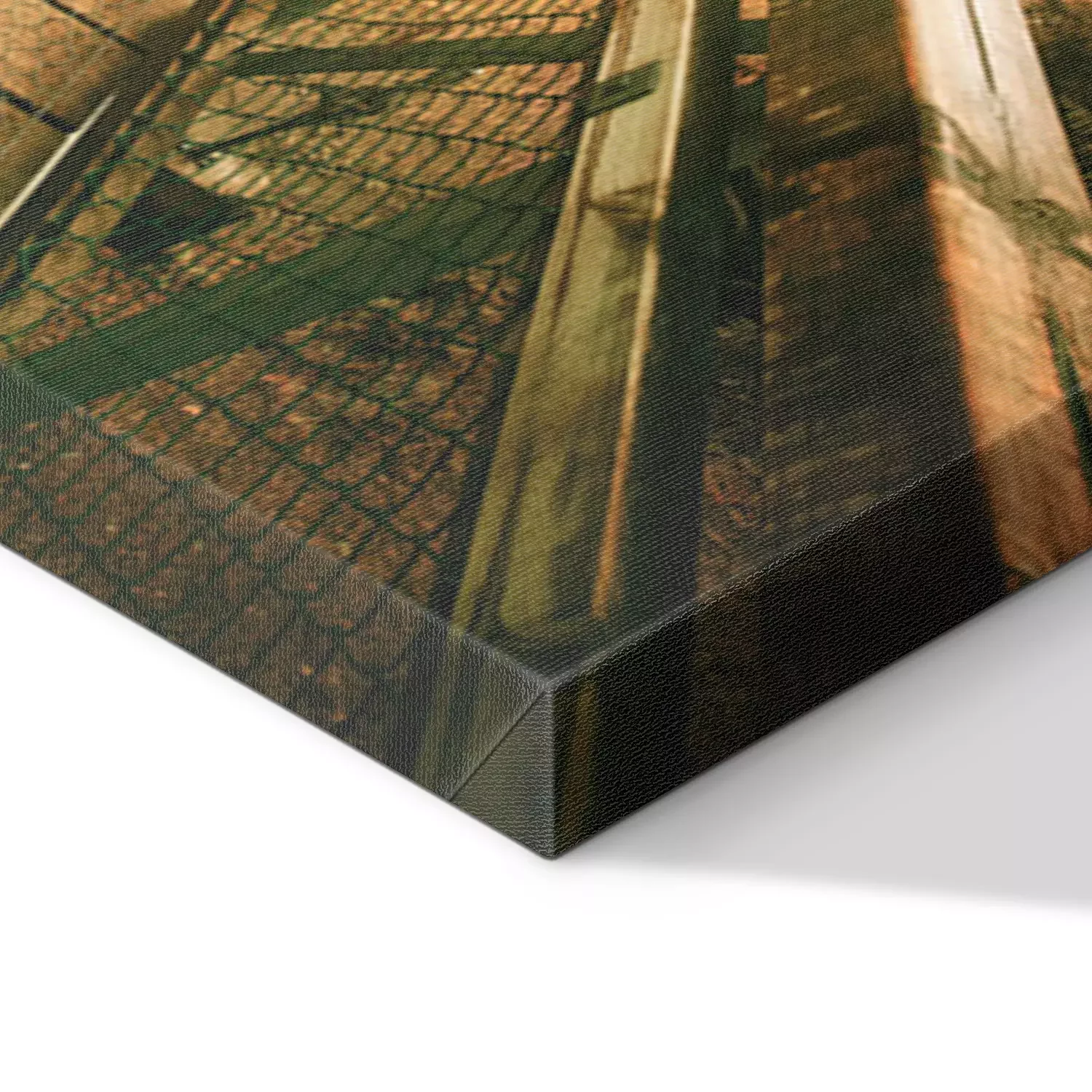 De print wordt aangebracht op hoogwaardig canvas dat op een schildersweefgetouw (spieraam) wordt gespannen. Omdat de print de zijranden bedekt, hoeft het ontwerp niet met een extra kader te worden omlijst. Wij raden ook composities aan die uit meerdere foto's bestaan en zo een coherente compositie vormen.