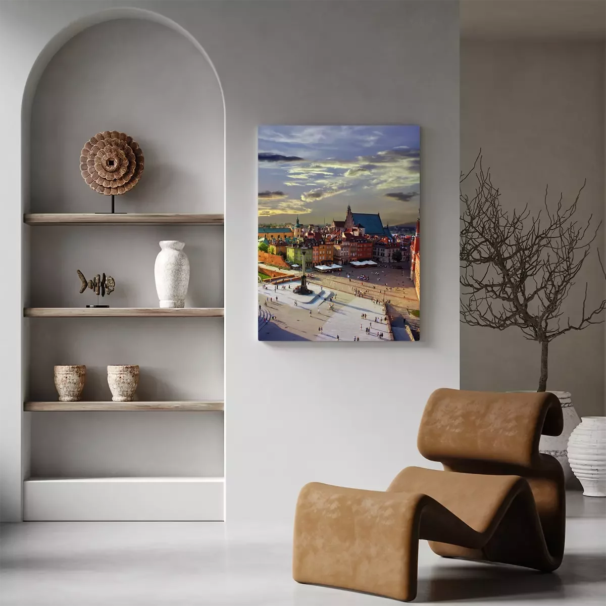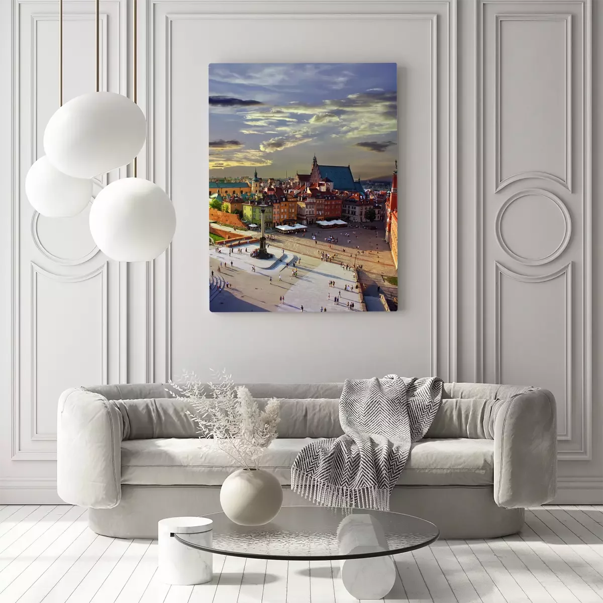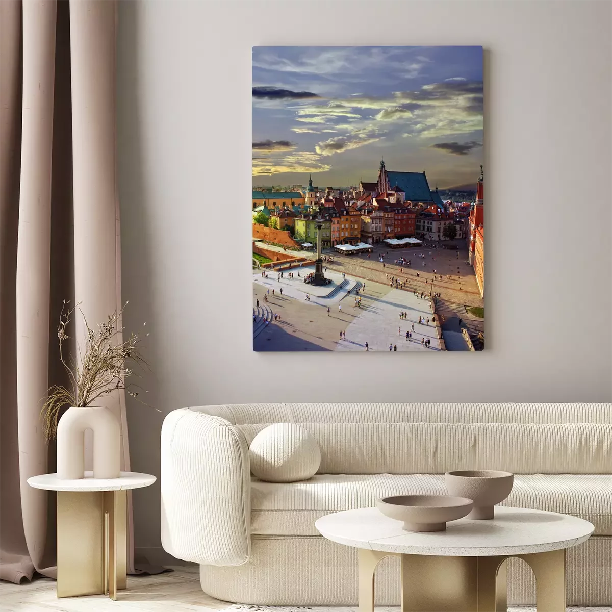 Canvas: Warschau kasteel plein en zonsondergang