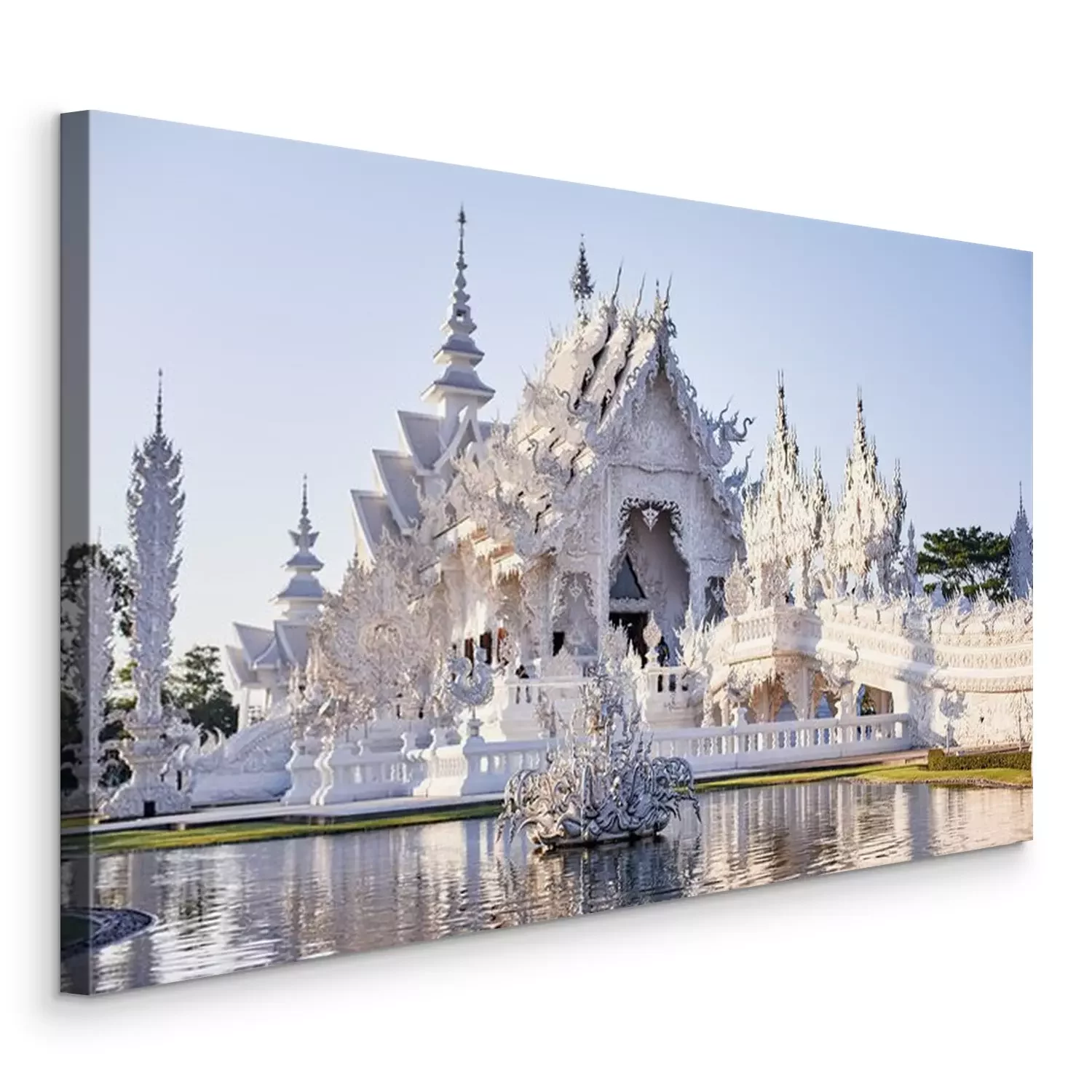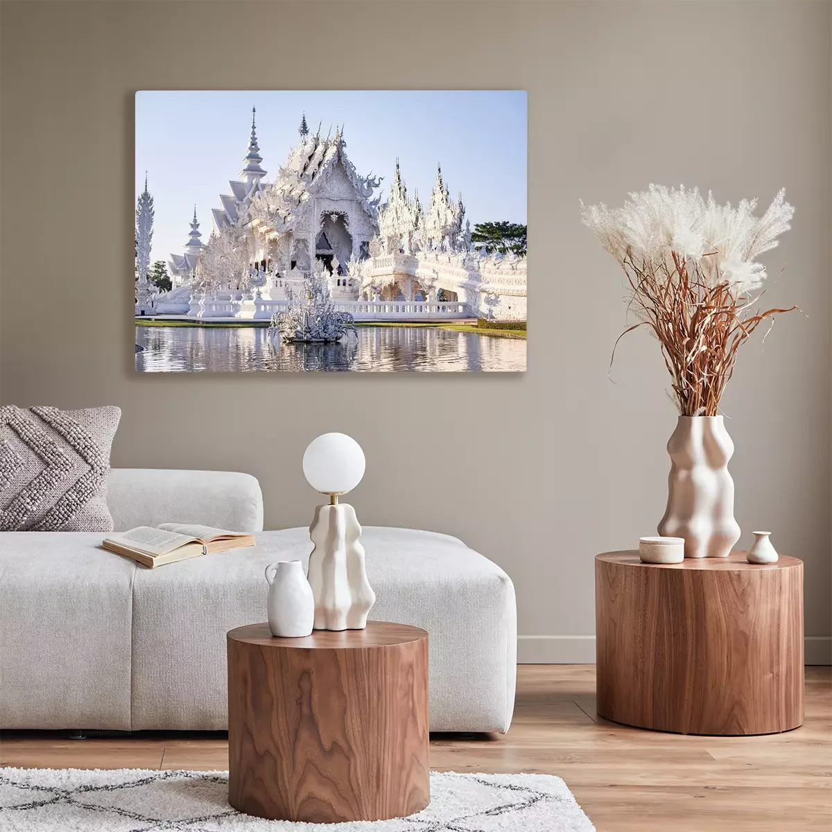 Canvas: Wat Rong Khun, Wat Phra Kaew. Famous White Temple in Chiang Rai, Thailand.