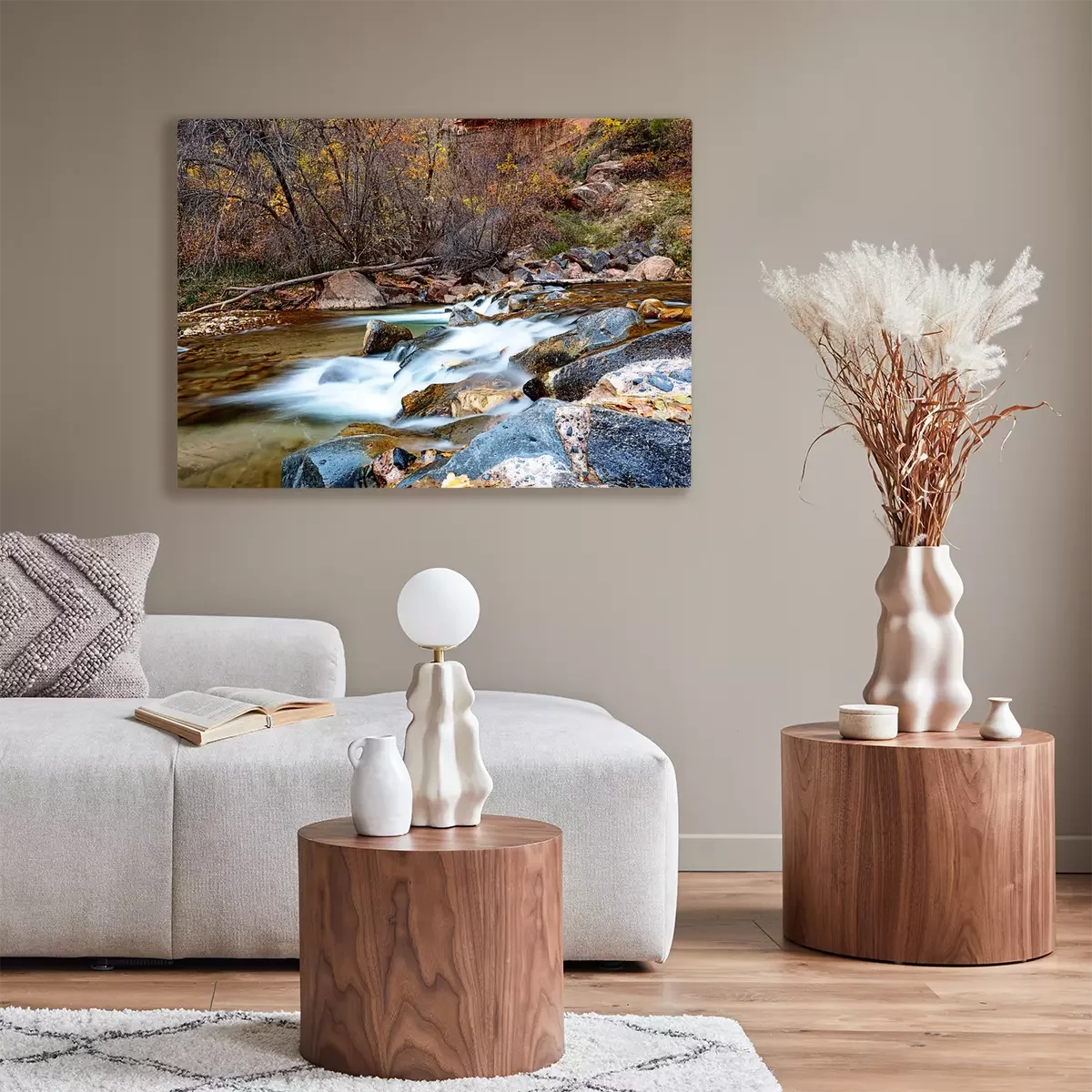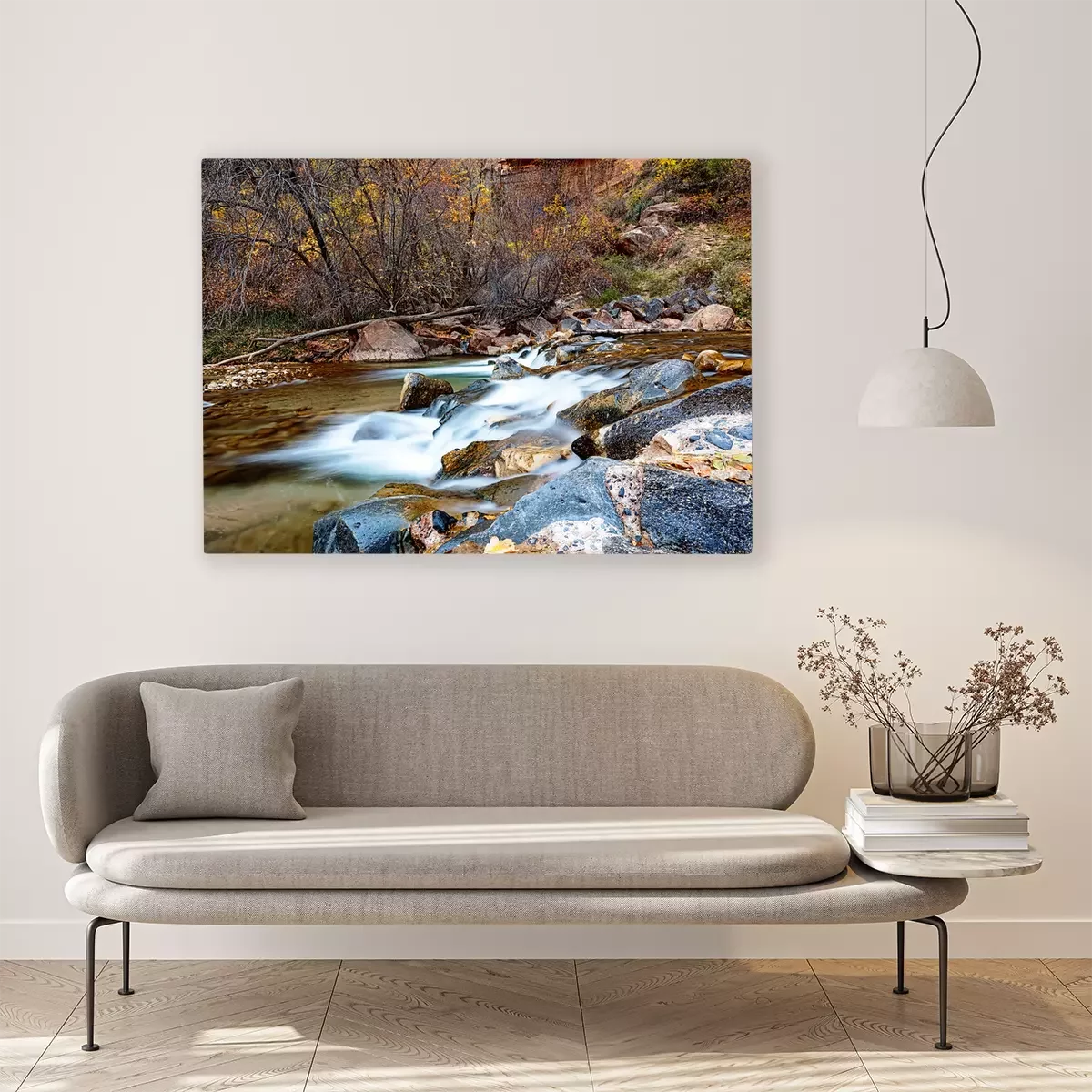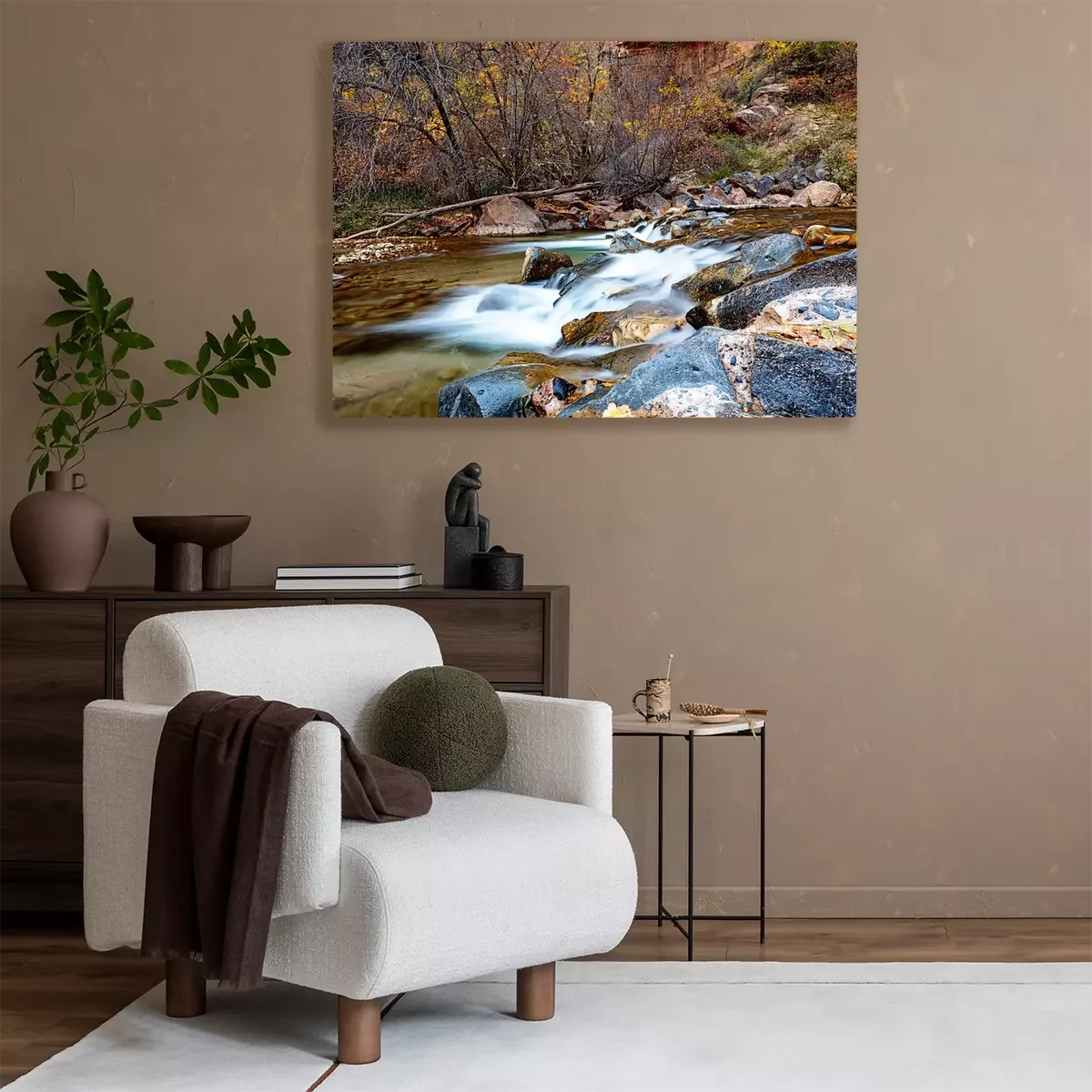 Canvas Water stroomt door de rivier Virgin in Zion National Park in de Verenigde Staten