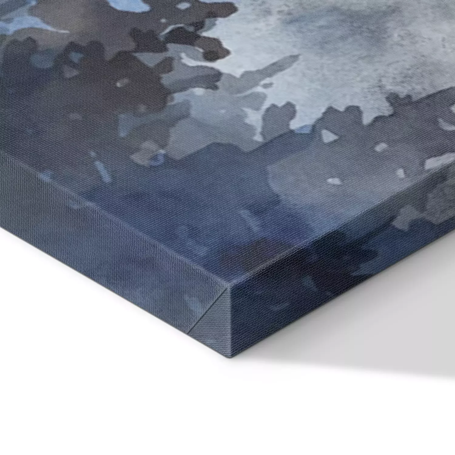 De print wordt aangebracht op hoogwaardig canvas dat op een schildersweefgetouw (spieraam) wordt gespannen. Omdat de print de zijranden bedekt, hoeft het ontwerp niet met een extra kader te worden omlijst. Wij raden ook composities aan die uit meerdere foto's bestaan en zo een coherente compositie vormen.