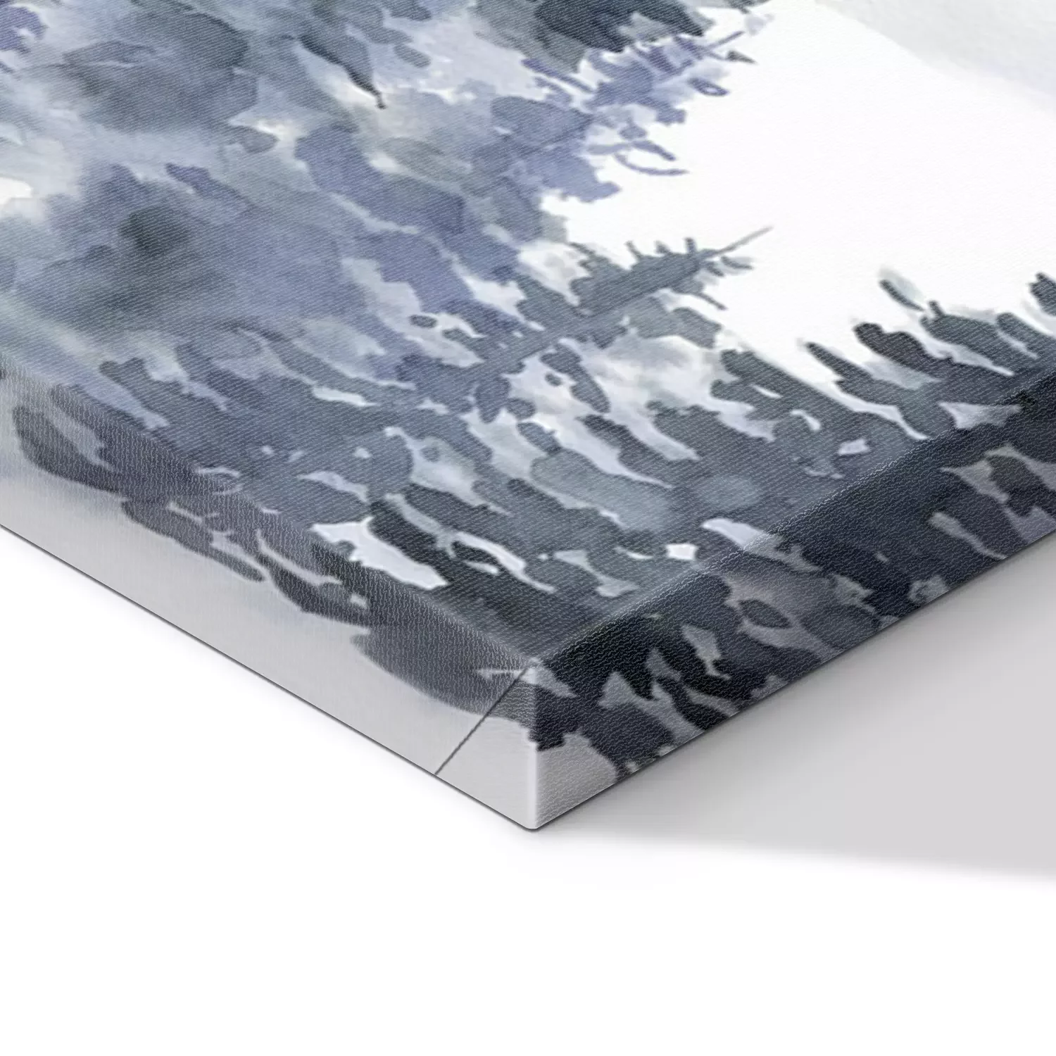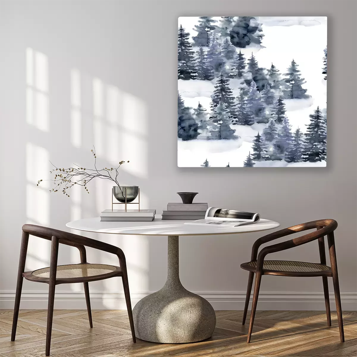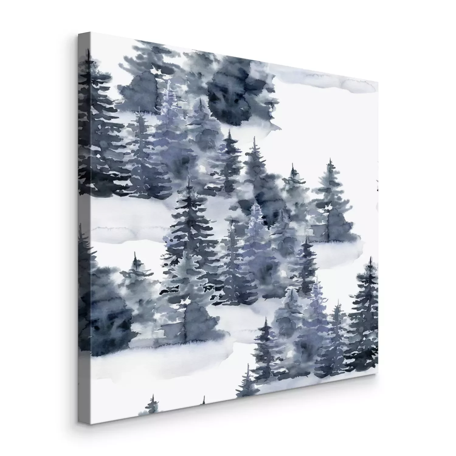 Canvas: Watercolor Christmas seamless pattern with winter forest. Hand painted foggy fir trees and snow illustration isolated on white background. Holiday illustration for design, print, fabric or background.