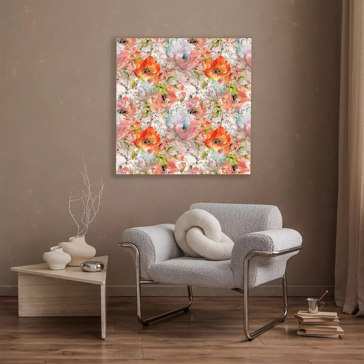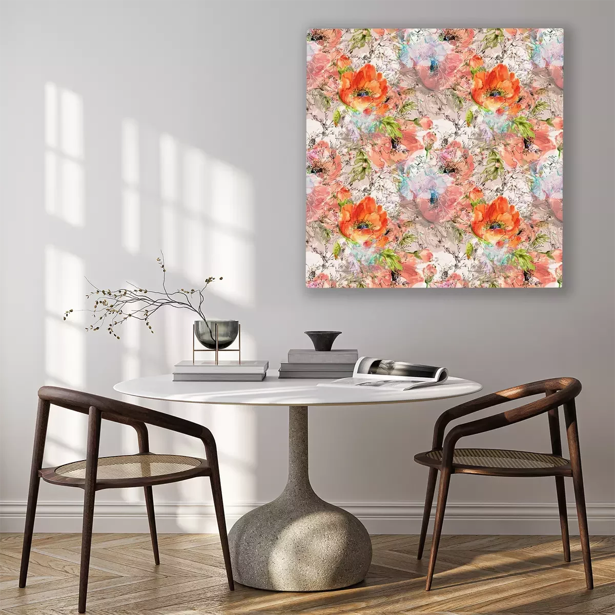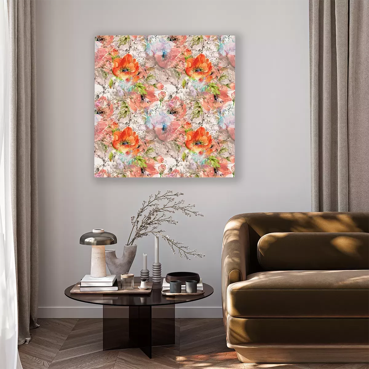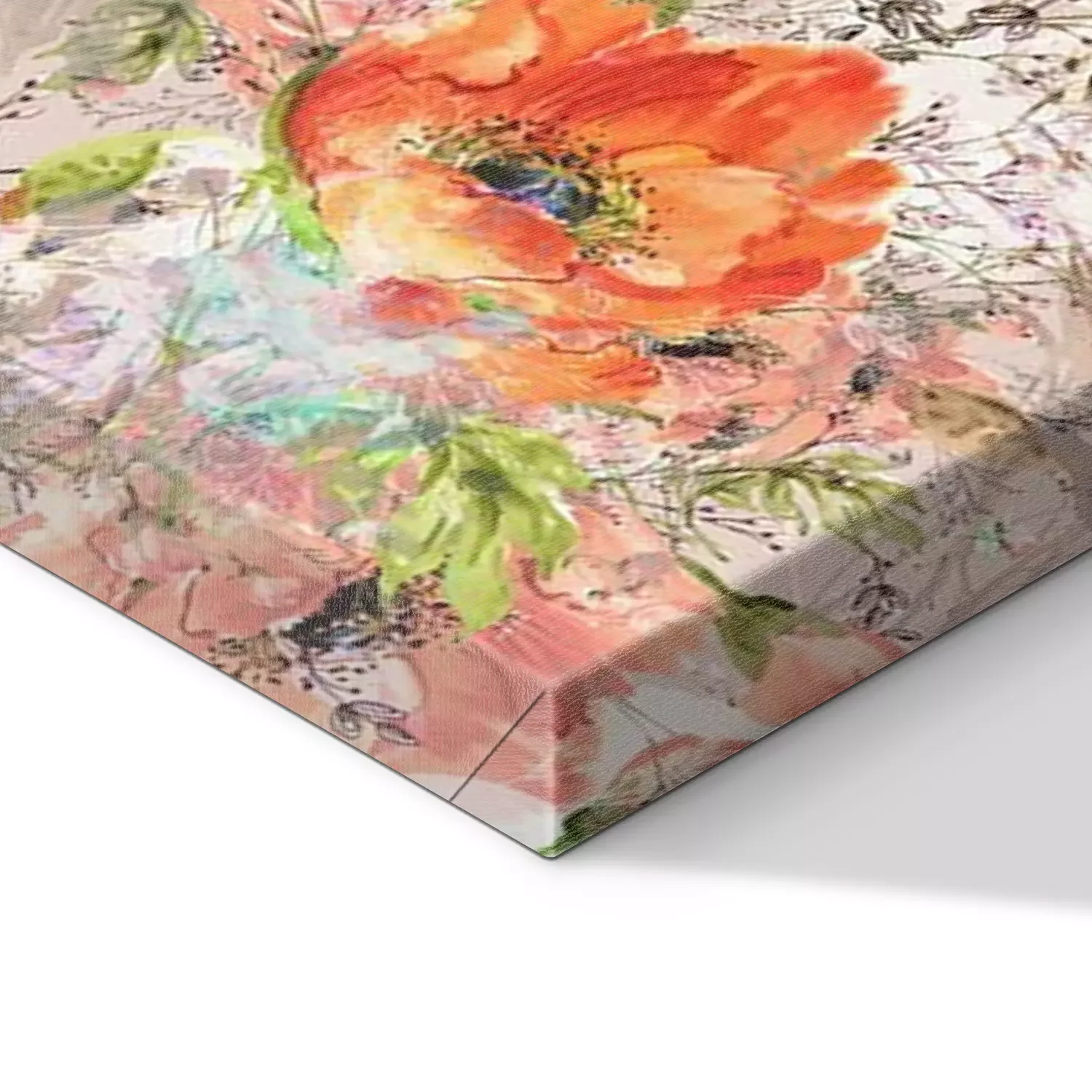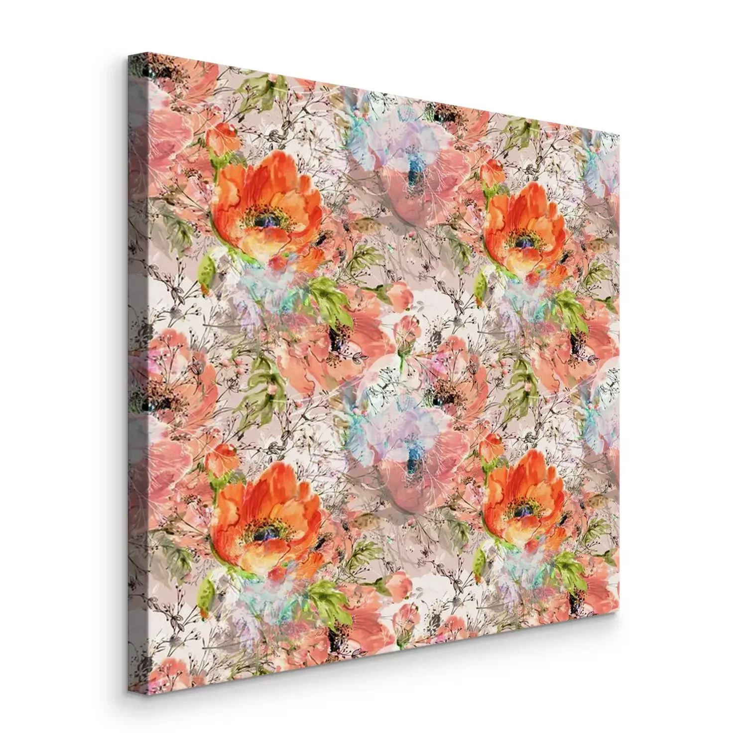 Canvas  Watercolor seamless pattern of wild poppies and grass