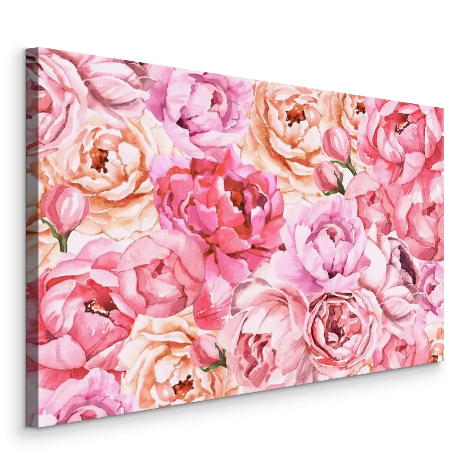 Canvas: Watercolour hand painted botanical gentle macro peony flowers illustration wallpaper background