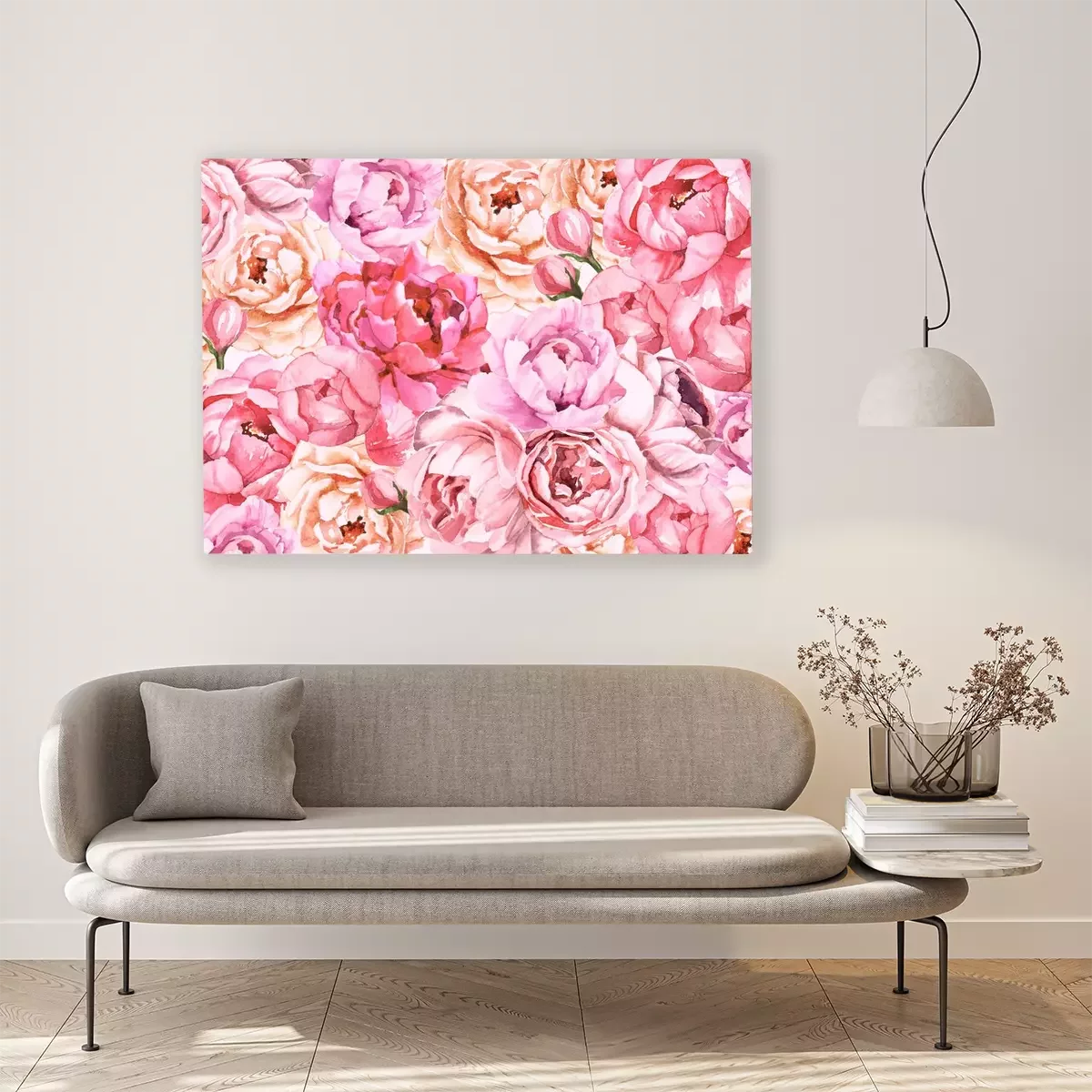 Canvas Watercolour hand painted botanical gentle macro peony flowers illustration wallpaper background