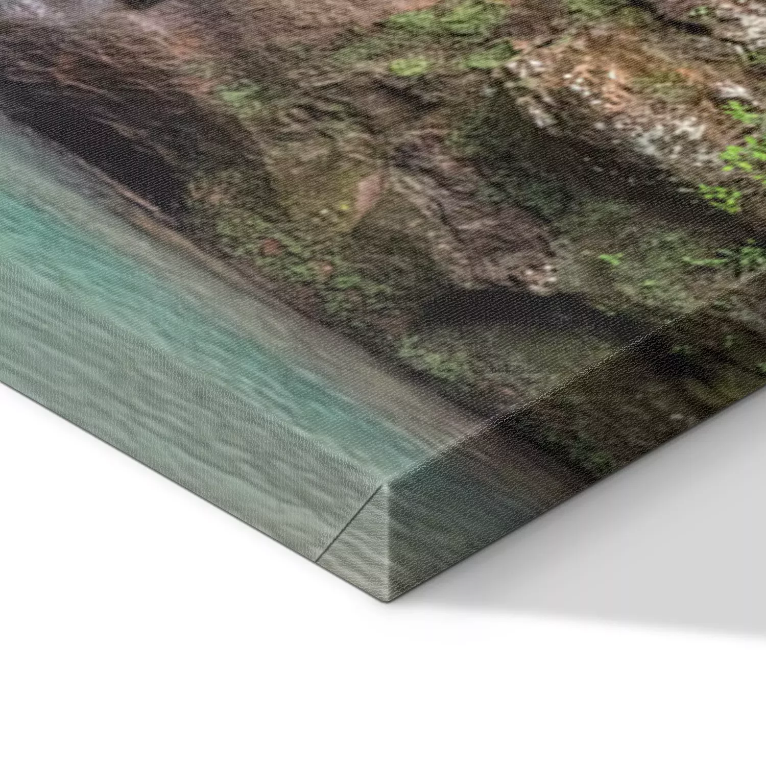 De print wordt aangebracht op hoogwaardig canvas dat op een schildersweefgetouw (spieraam) wordt gespannen. Omdat de print de zijranden bedekt, hoeft het ontwerp niet met een extra kader te worden omlijst. Wij raden ook composities aan die uit meerdere foto's bestaan en zo een coherente compositie vormen.
